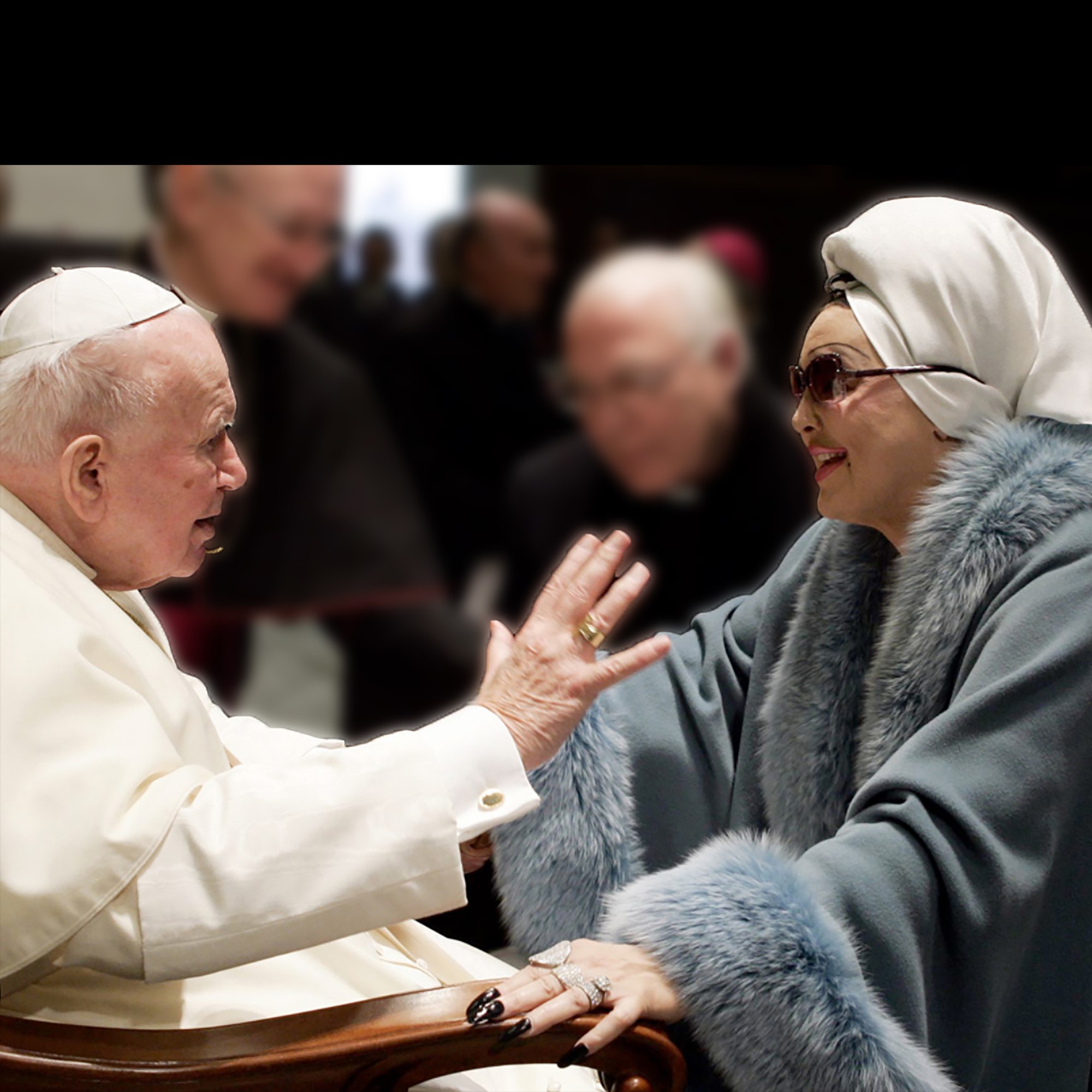 interamente rivestita di paillettes, impreziosita da gocce di perle artificiali.