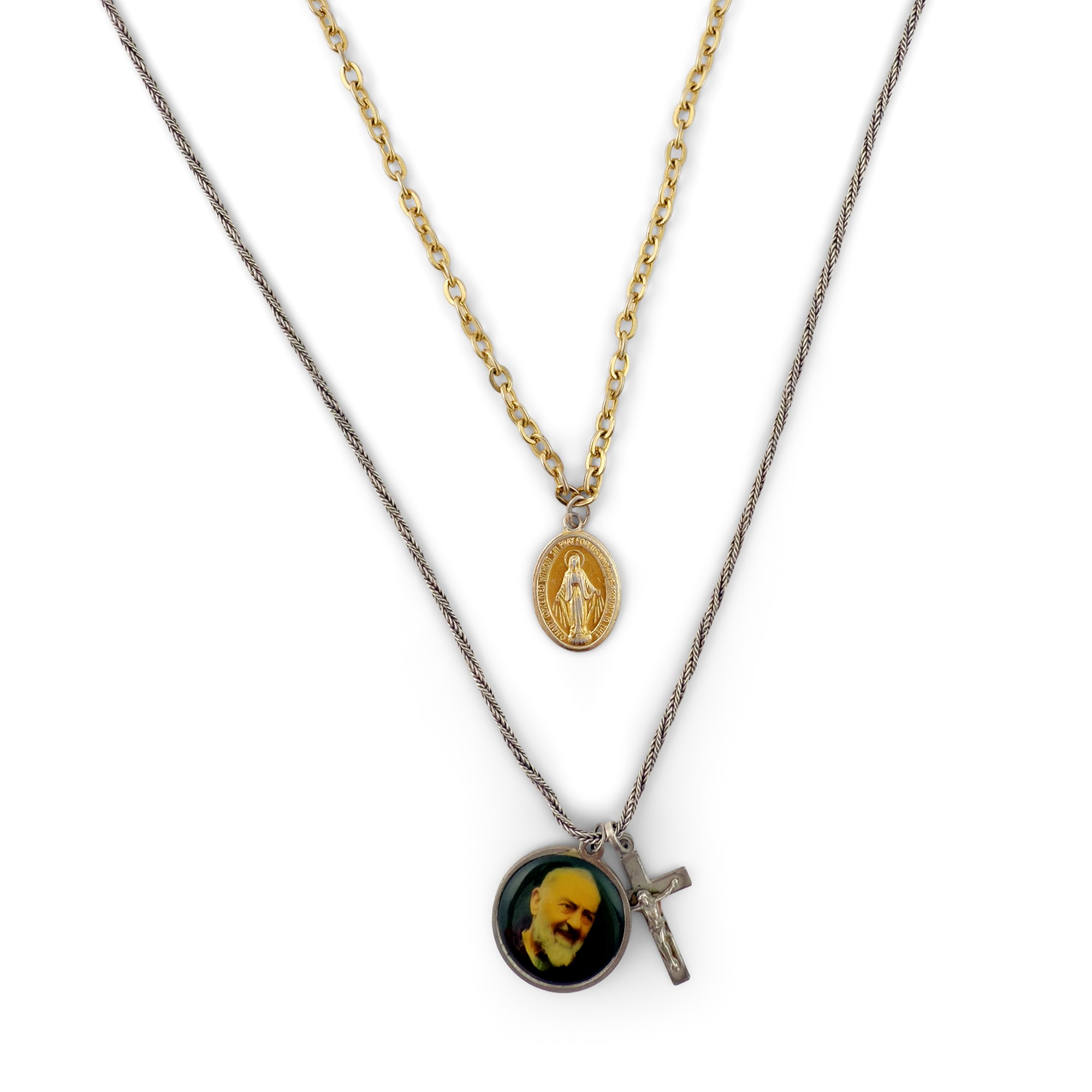 eseguita nello stile dei pastori da presepe napoletani del '700, h. cm. 45 circa (difetti) UNITA a due catenine votive delle quali una con croce in argento