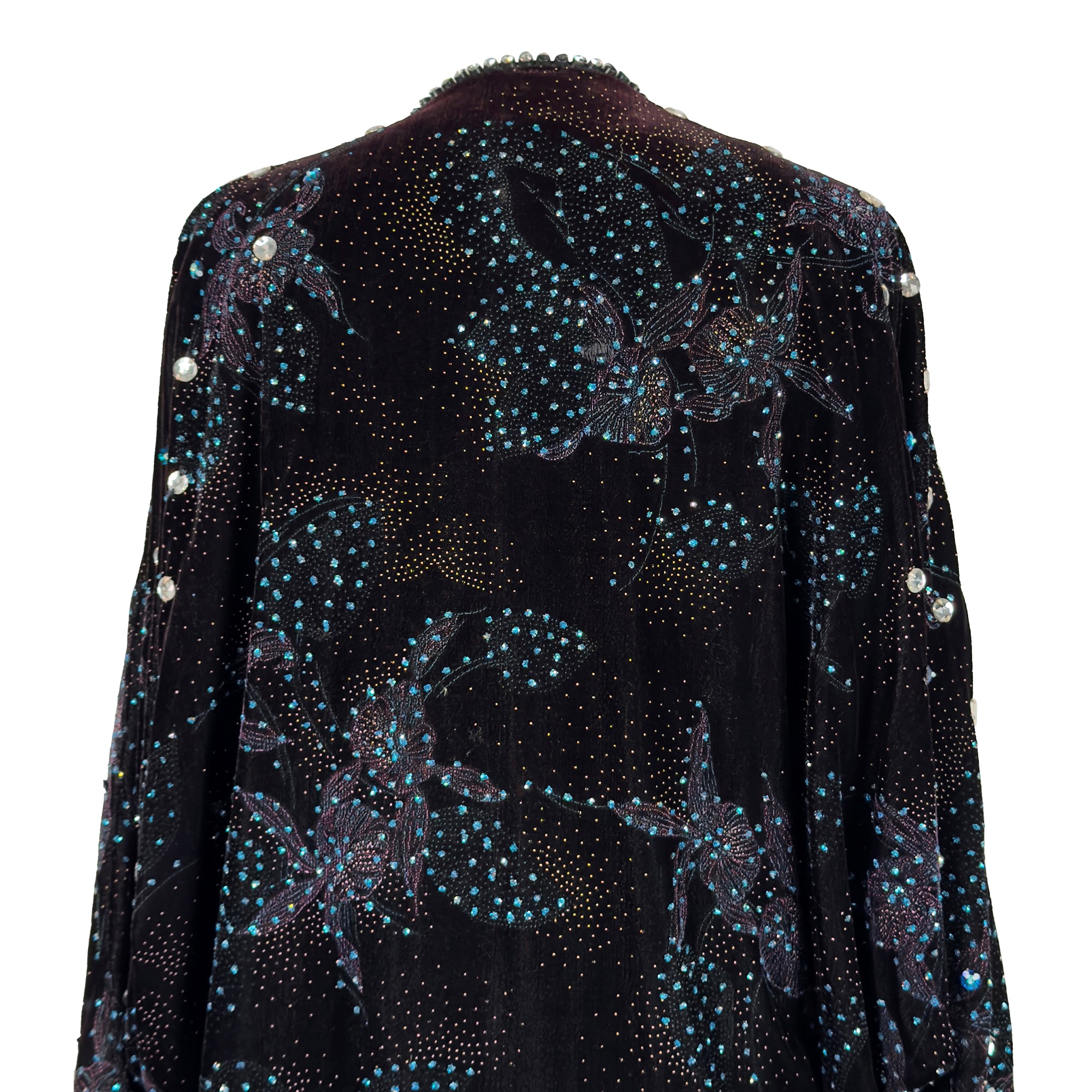 cabane in velluto nero decorato a motivi floreali abbellito da strass sfaccettati di diversa grandezza