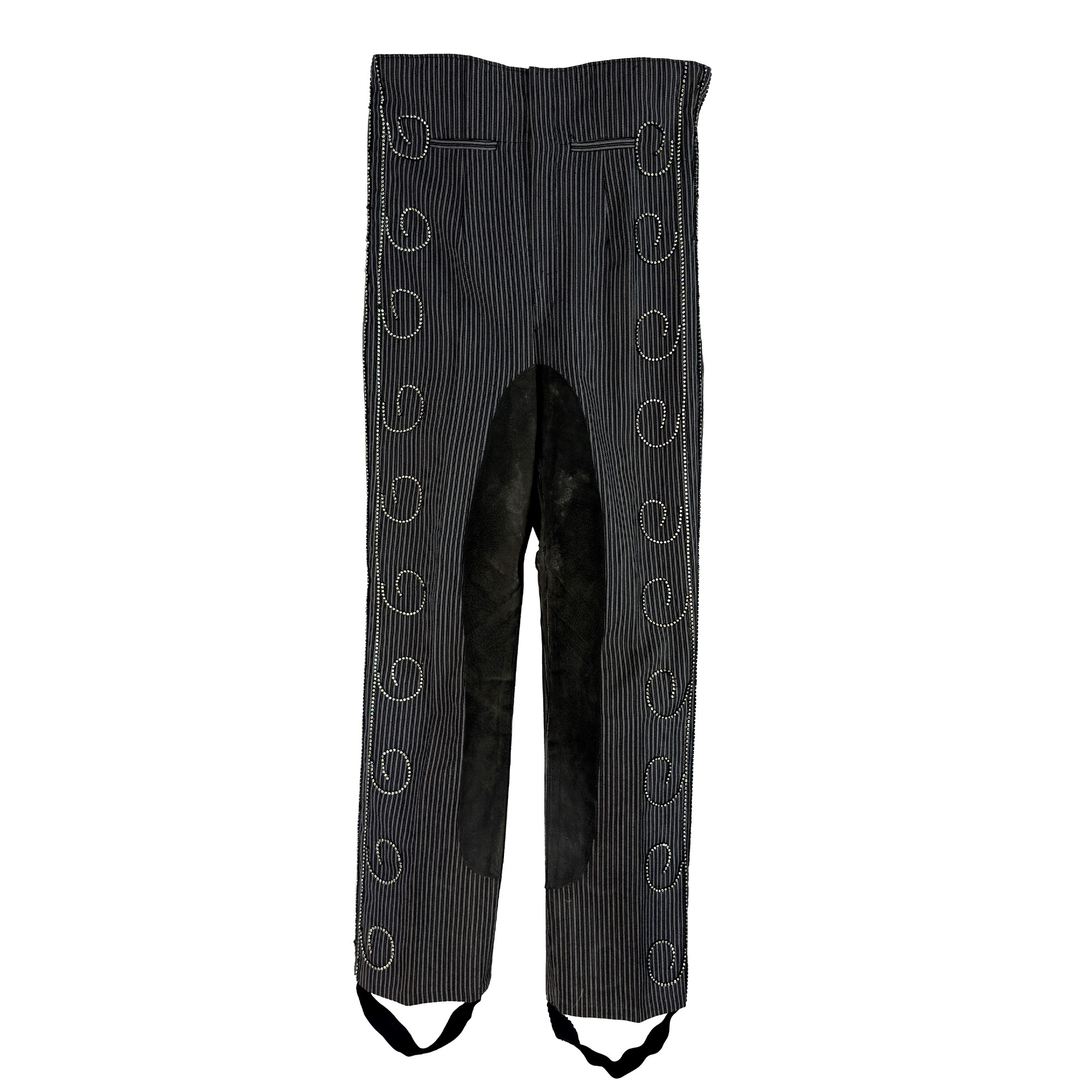 con staffe, in tessuto di lana tight arricchito da applicazioni di strass; rinforzo interno in pelle nera, tg. 46