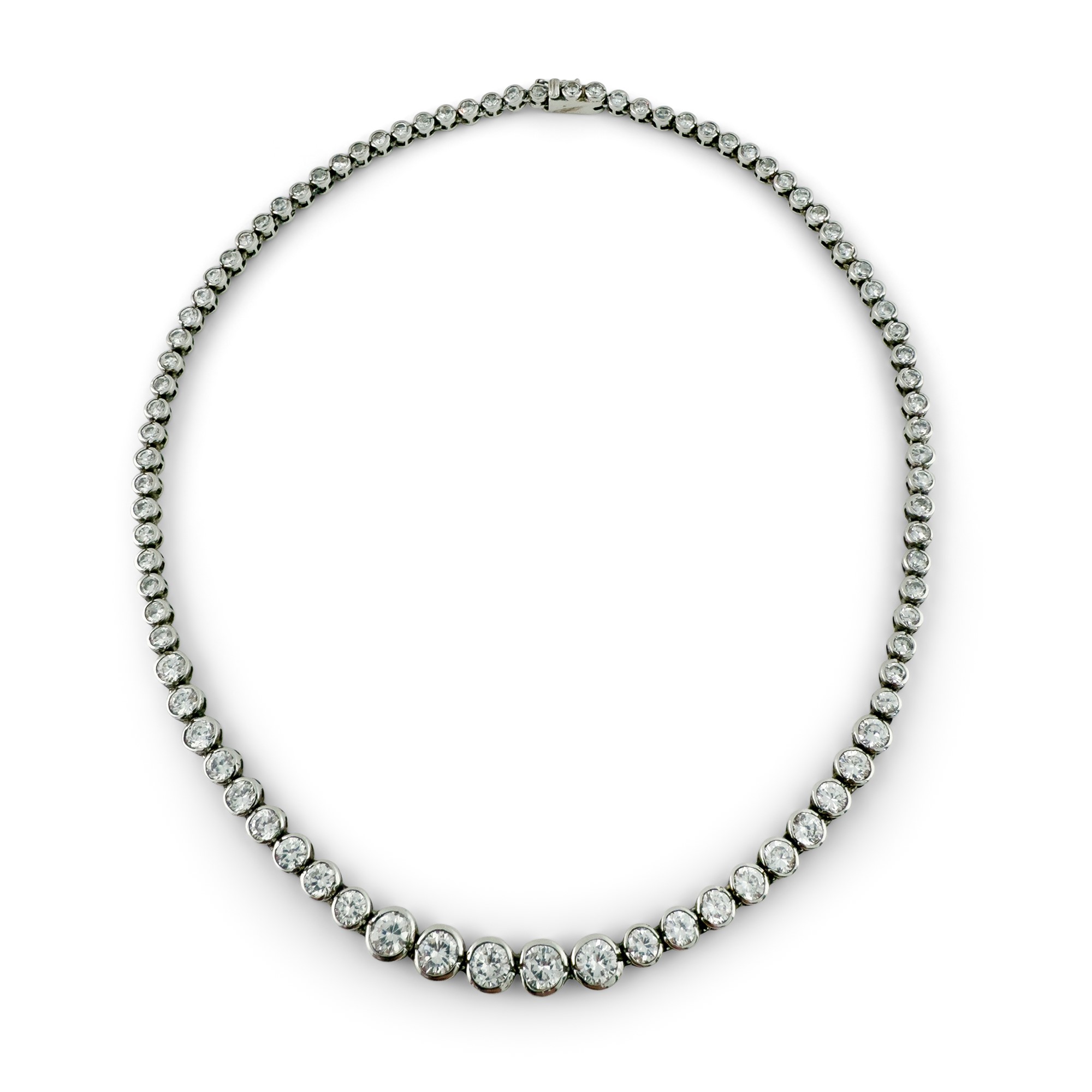 UNITI a un orecchino singolo e a un collier in argento sterling con pietre sintetiche, il collier: l. cm. 41 (un orecchino mancante della clip)