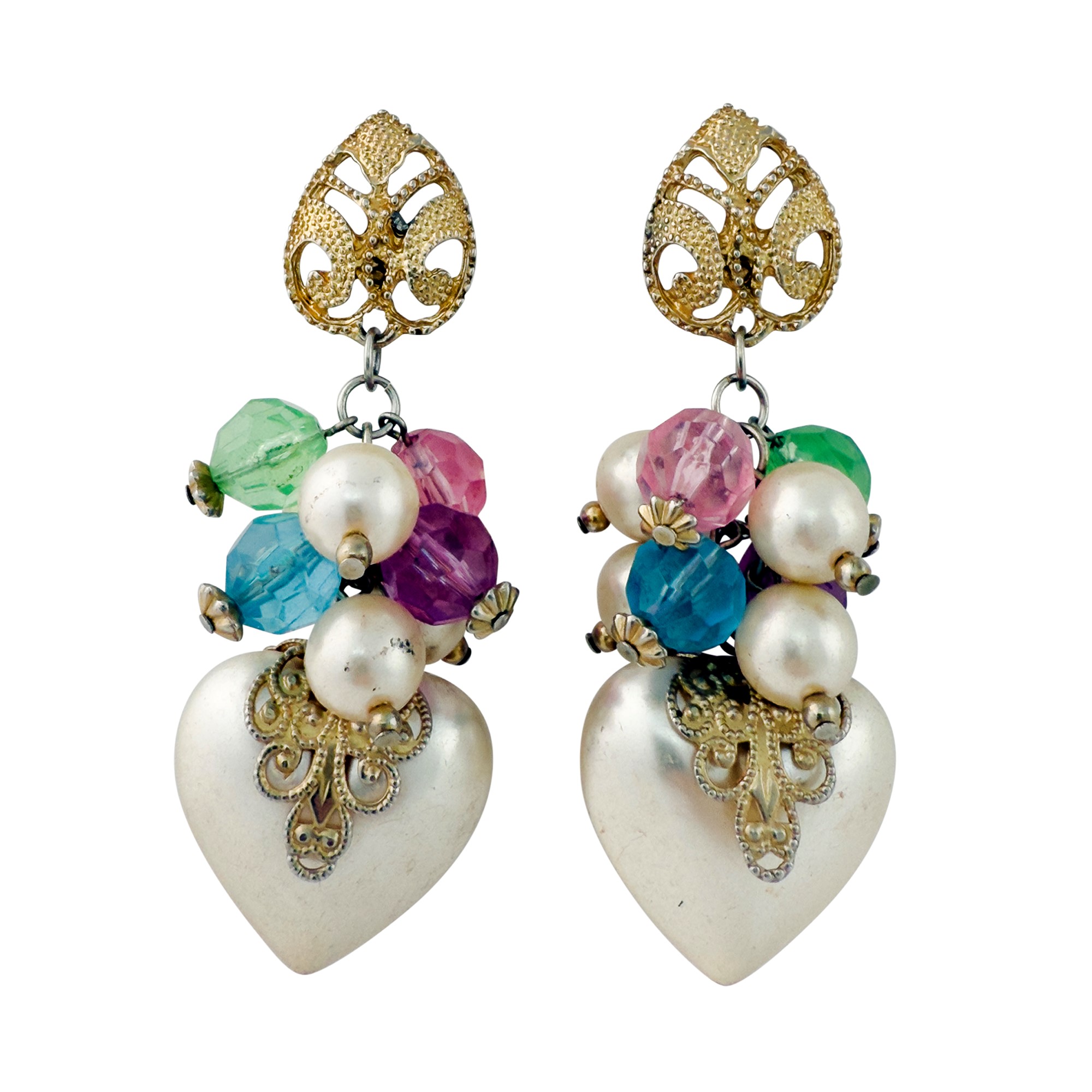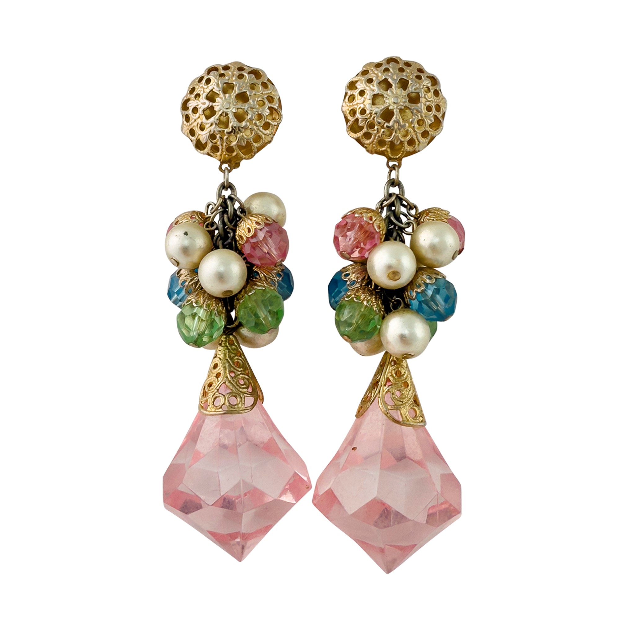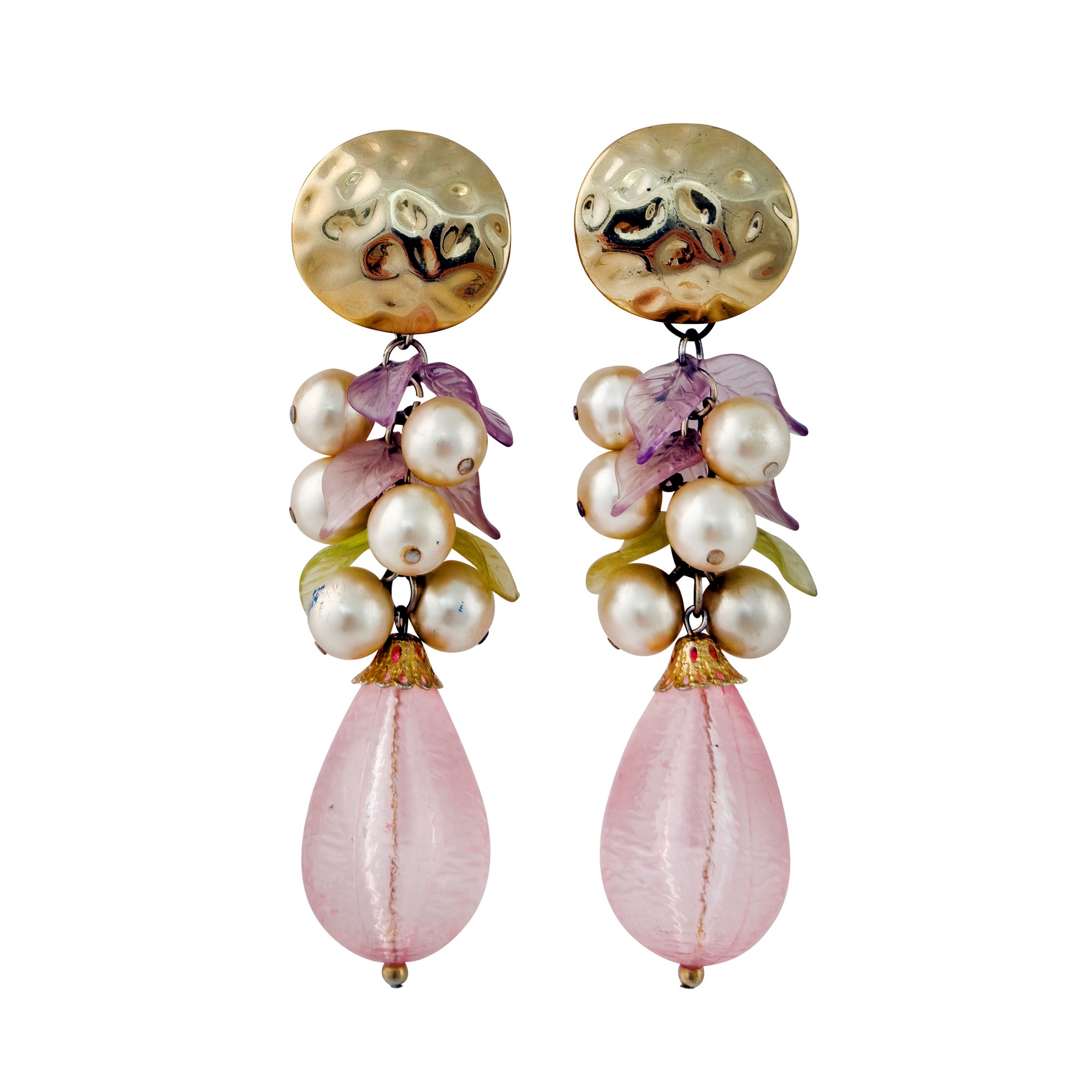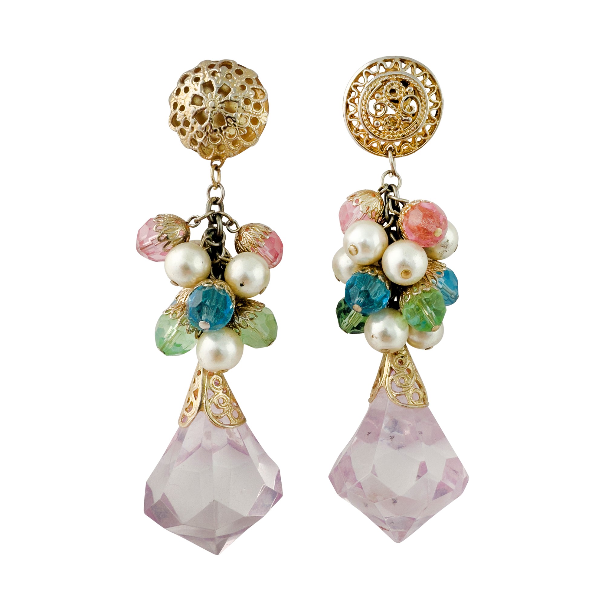 Quattro paia di orecchini dorati e materiale plastico policromo