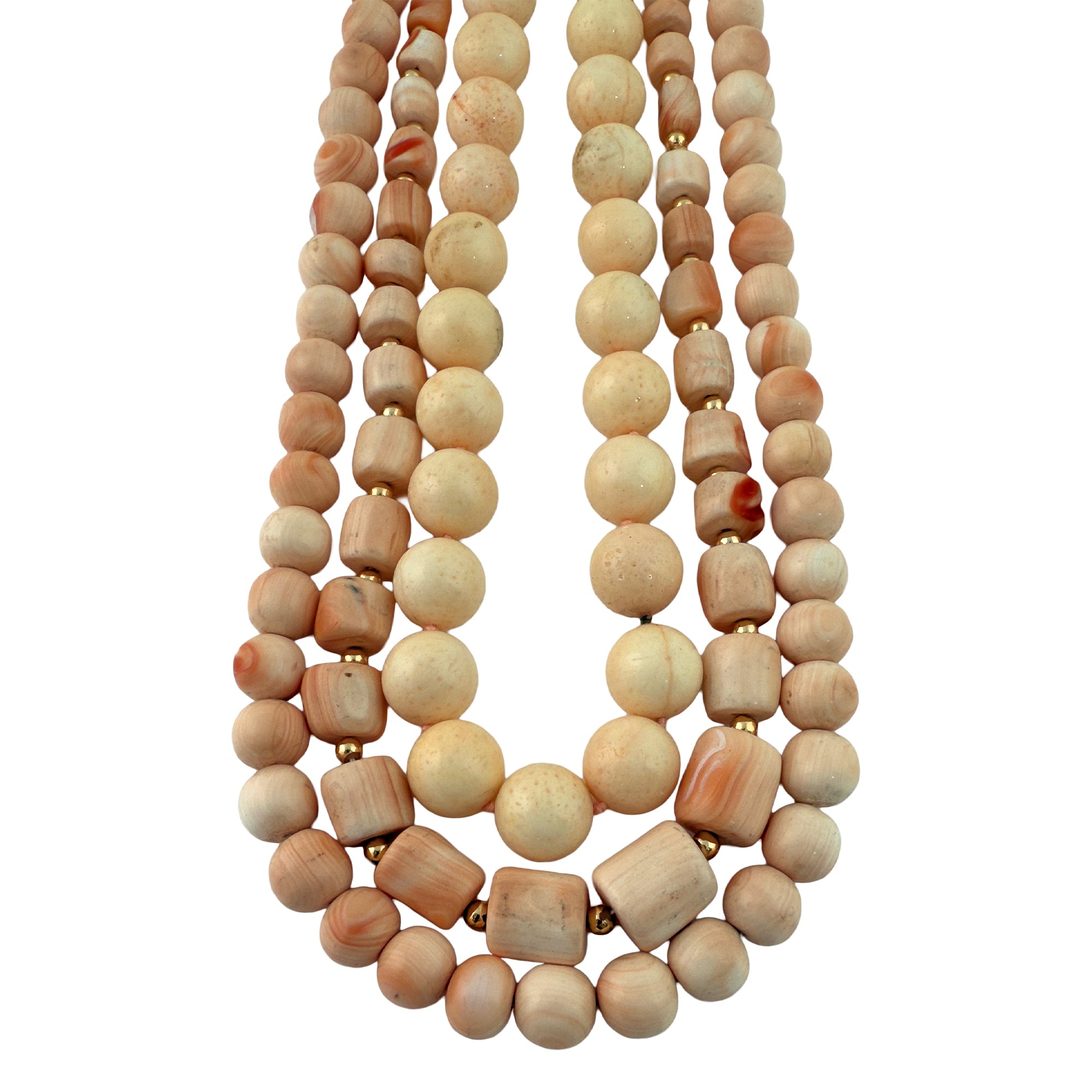 Tre collane con sfere e barilotti di conchiglia