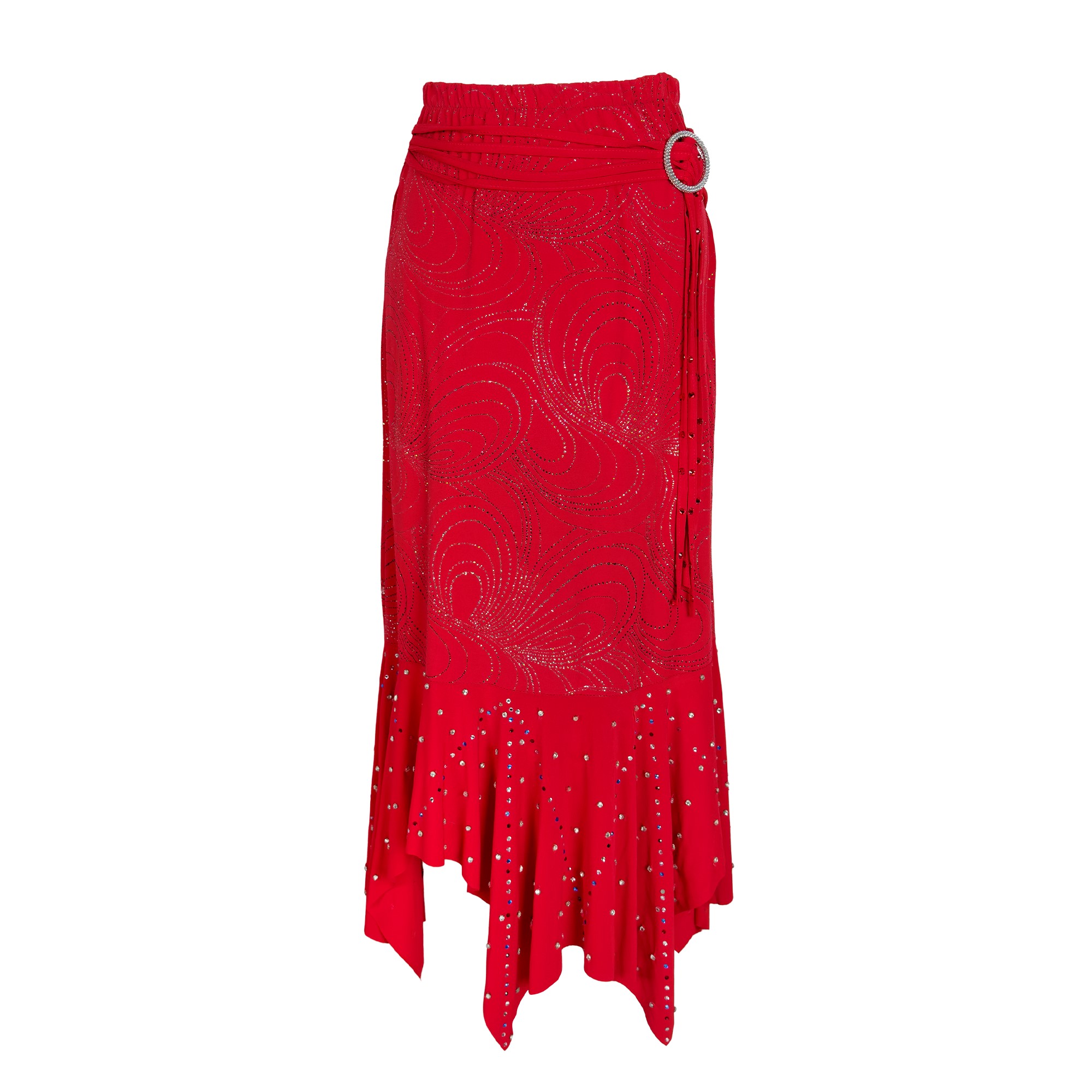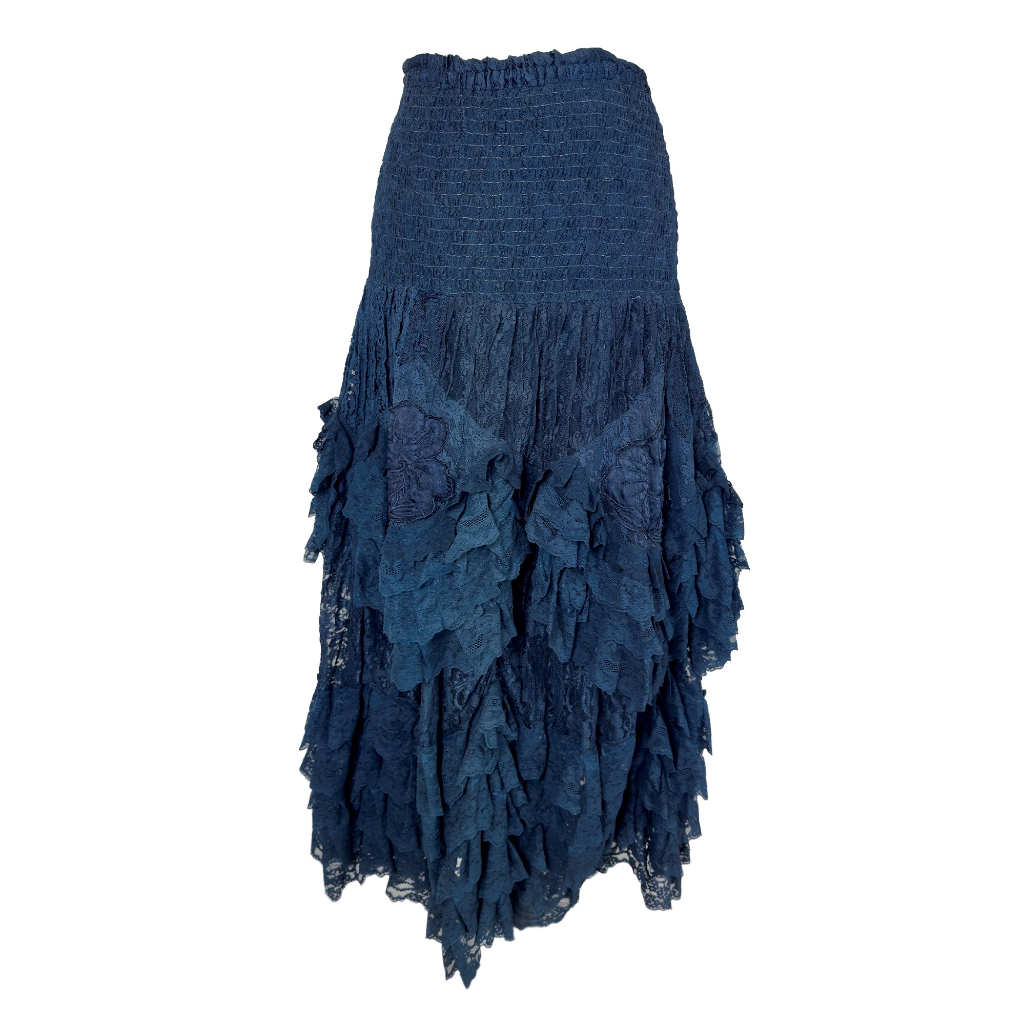 di tessuti differenti: una in tessuto a fondo rosso; una in tessuto e tulle a fondo rosa; e una in tessuto in parte in pizzo blu a balze