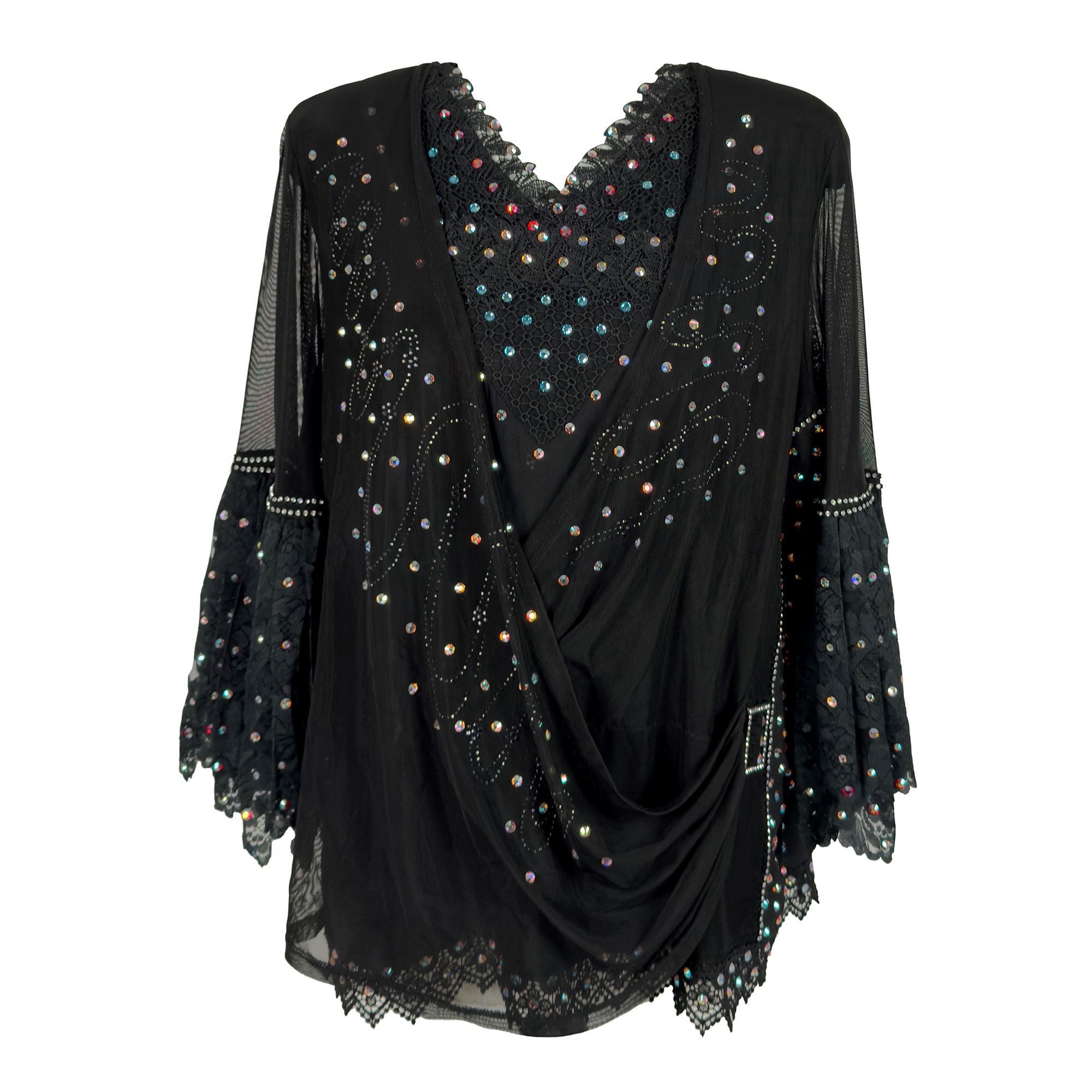 arricchite da strass sfaccettati e paillettes parimenti nere