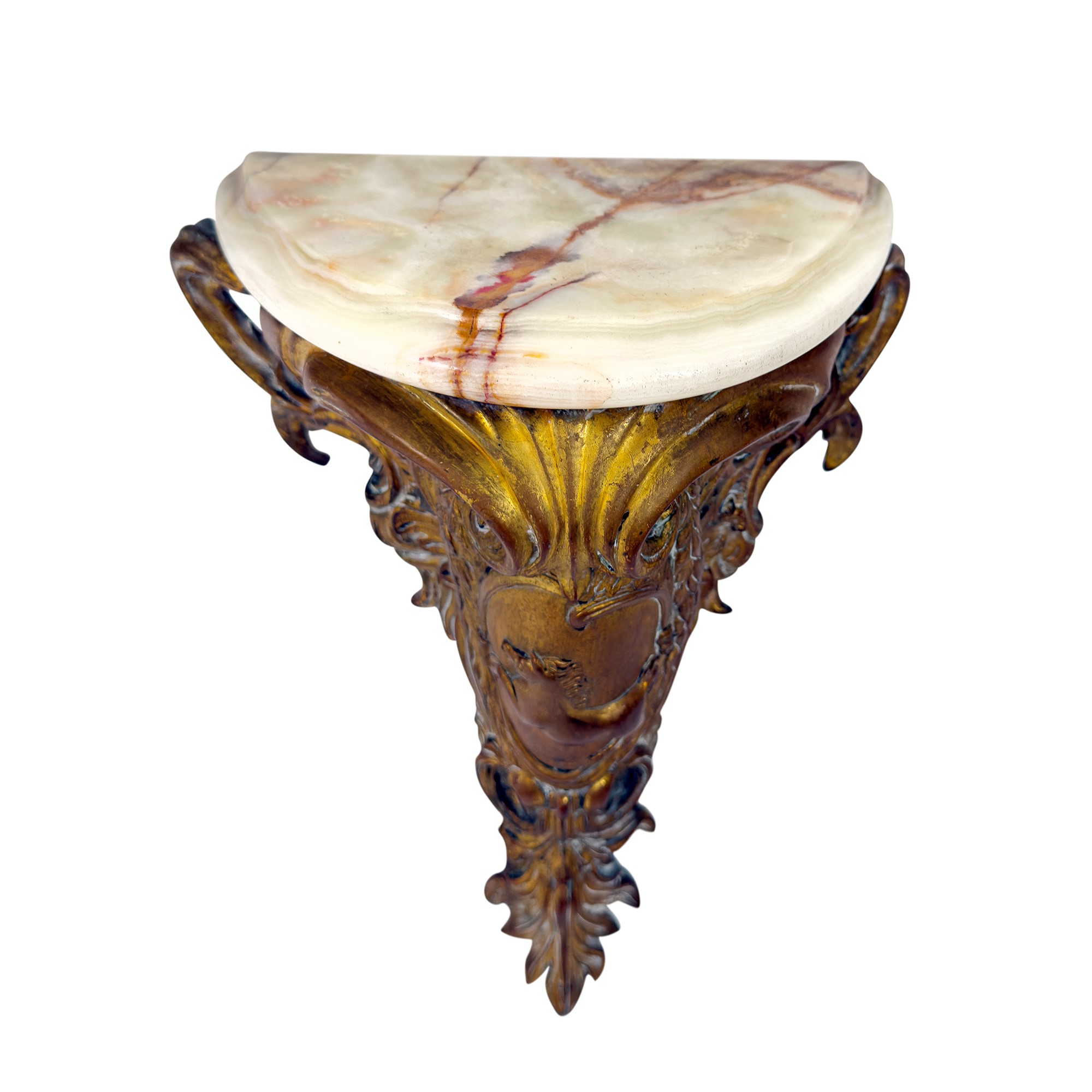 caratterizzate dalla figura di un cavallo rampante entro cartiglio fogliato; piano in onice, cm. 32x30x16