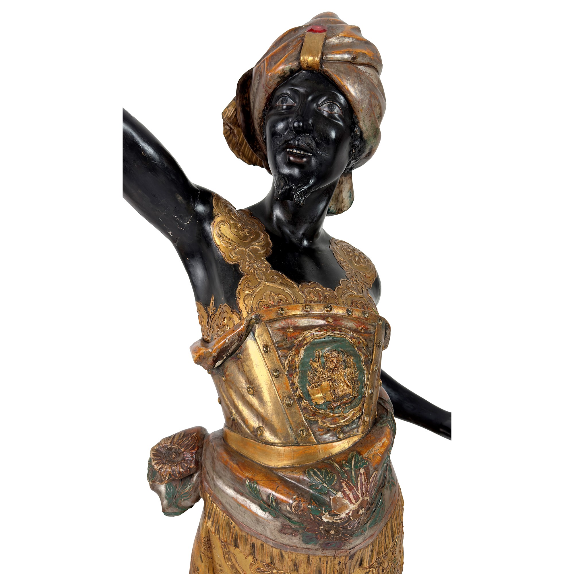 Moro reggitorcia in legno laccato, dorato e policromo, Venezia, XIX secolo