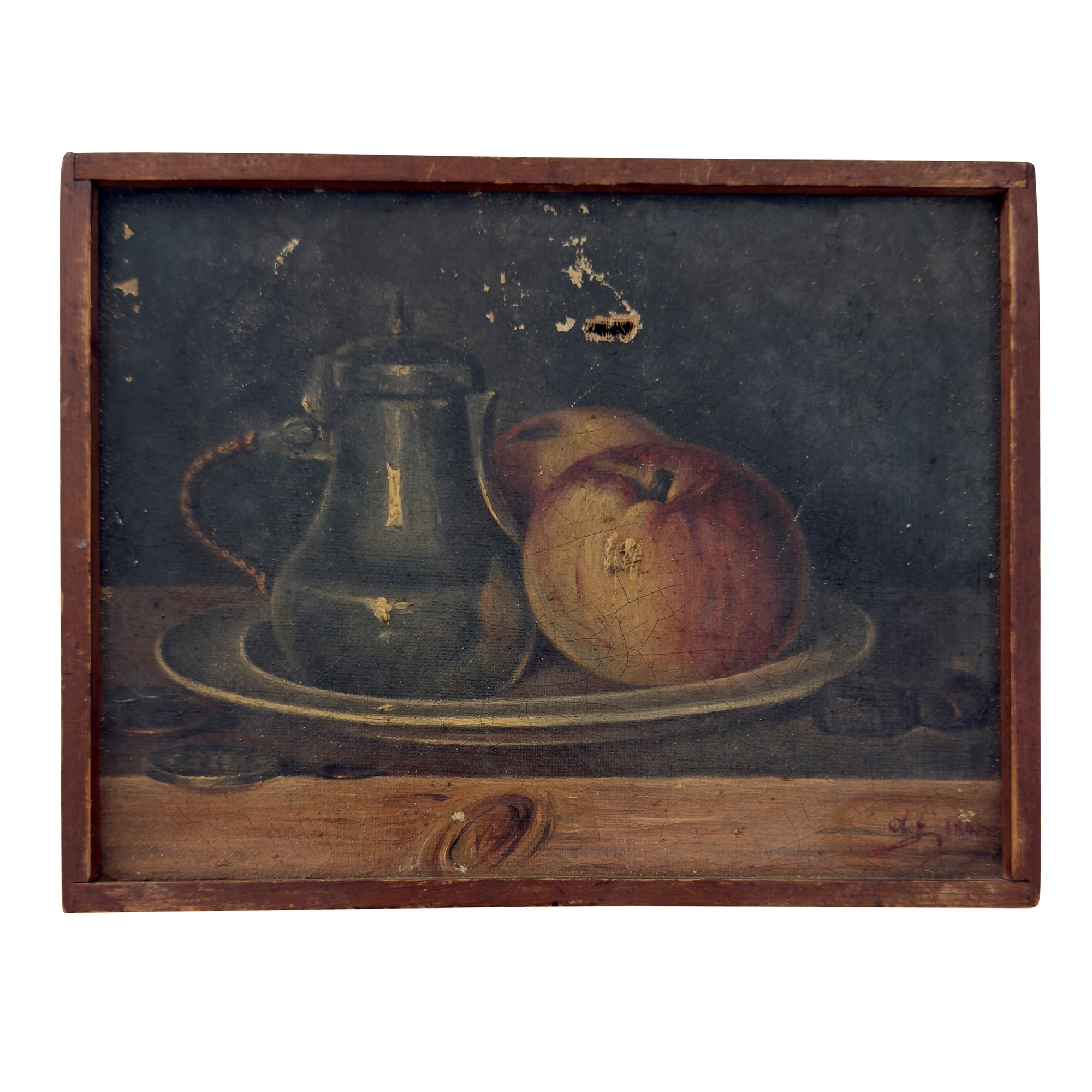 Tre piccole nature morte a olio su tela, XIX secolo