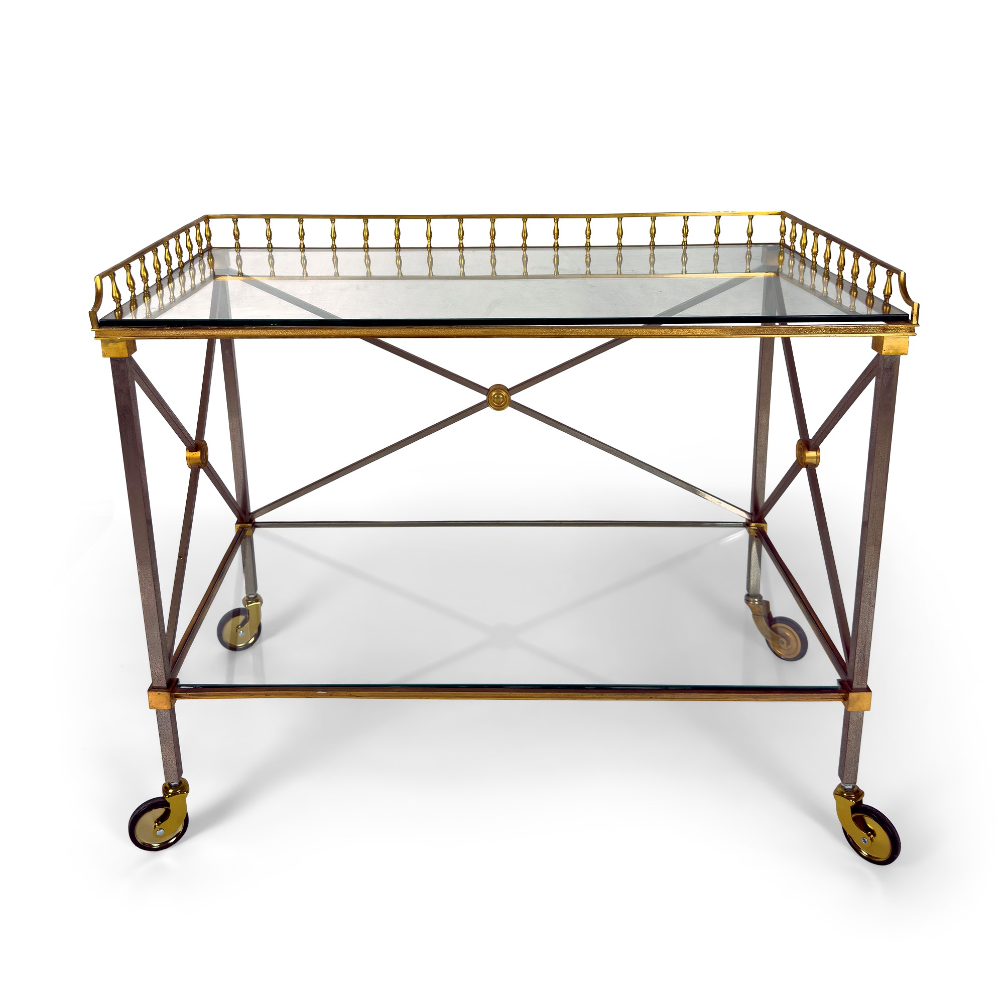 qualificato da una ringhierina a giorno; due ripiani in vetro, cm. 72x91x50