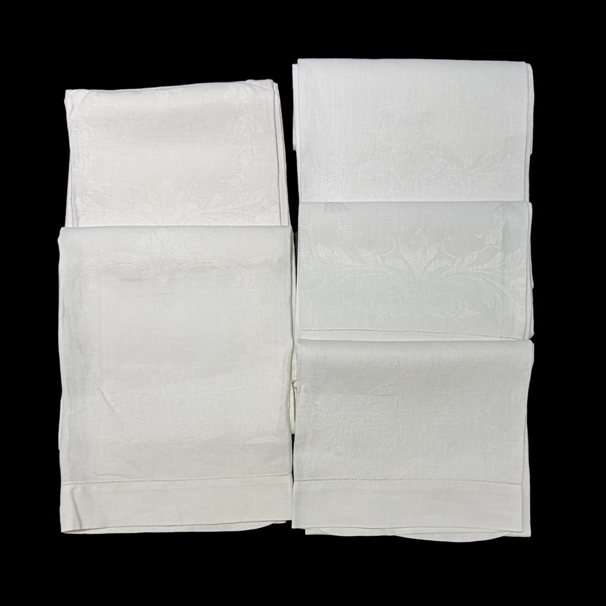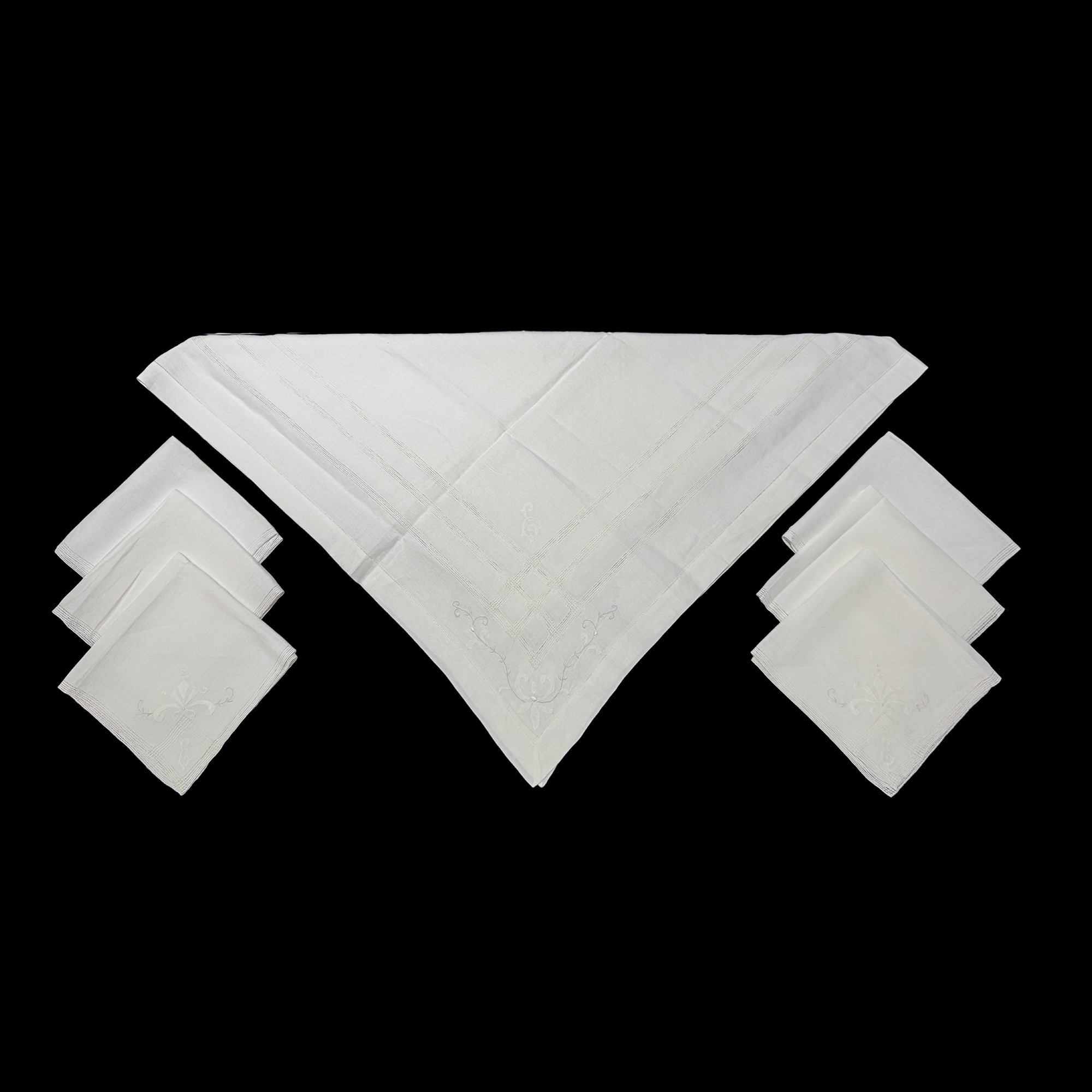 composto da 5 asciugamani, 36 tovaglioli (12+12+12), 1 tovaglietta da tè con 6 tovagliolini e quantità di tovagliolini da snack (qualche macchia)