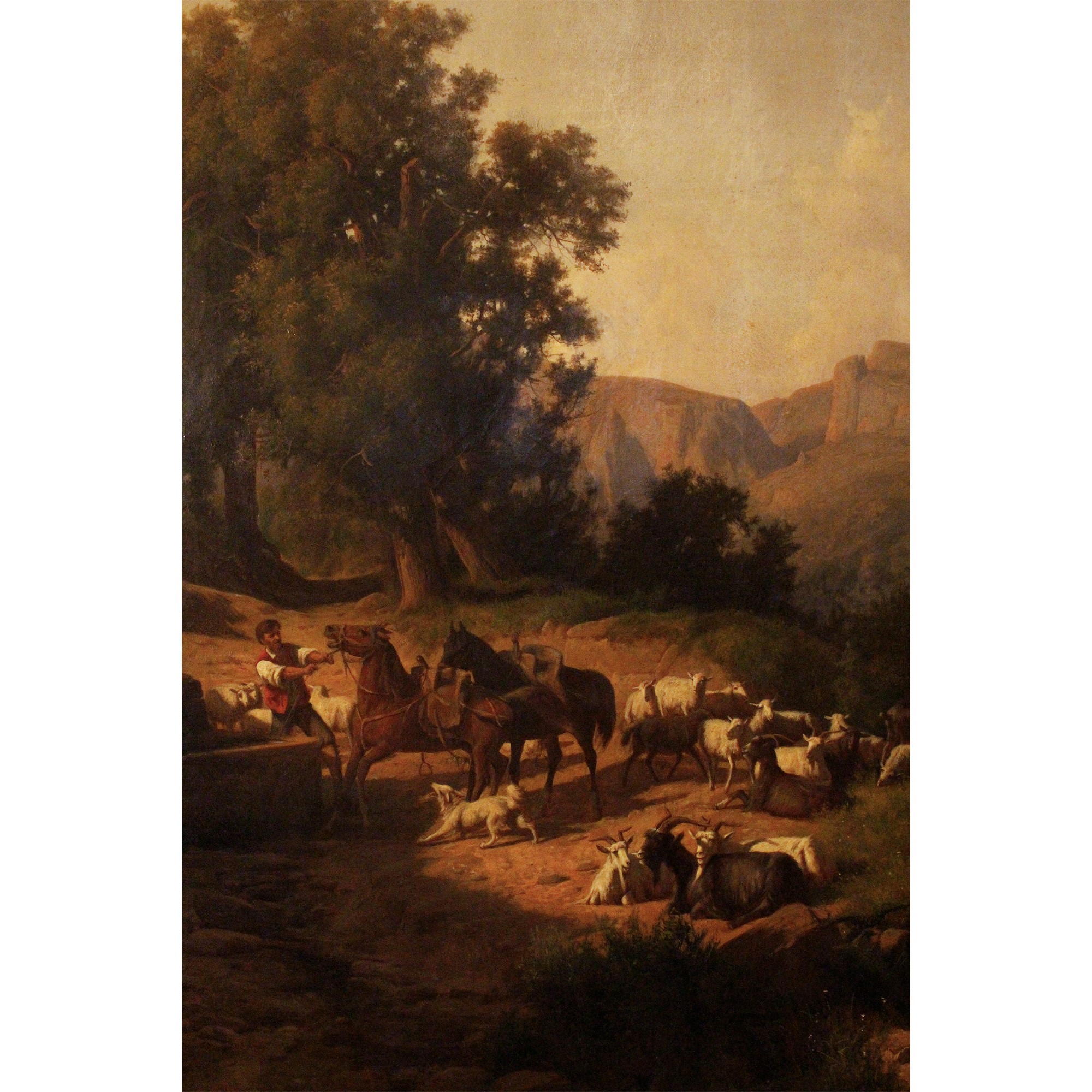 Andreas Markò, Paesaggio con pastori e gregge alla sosta, 1872, Vienna 1824 - 1895