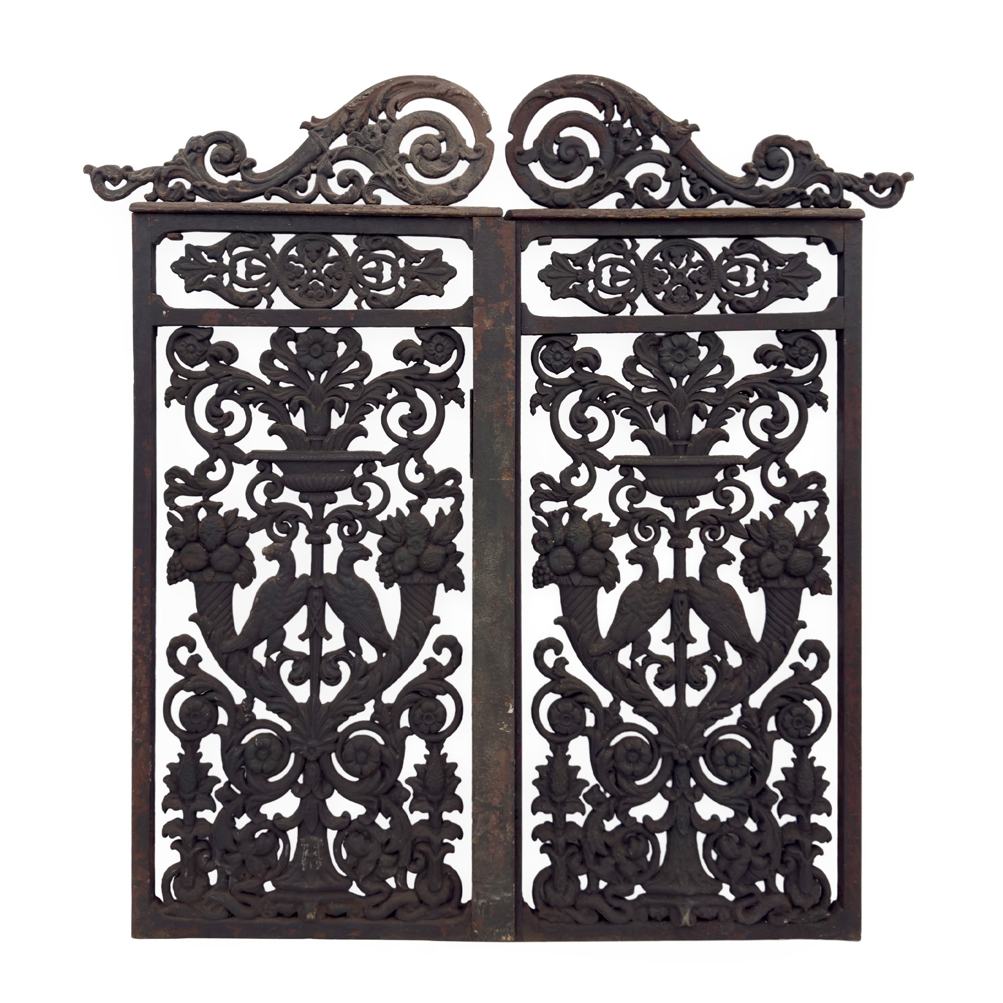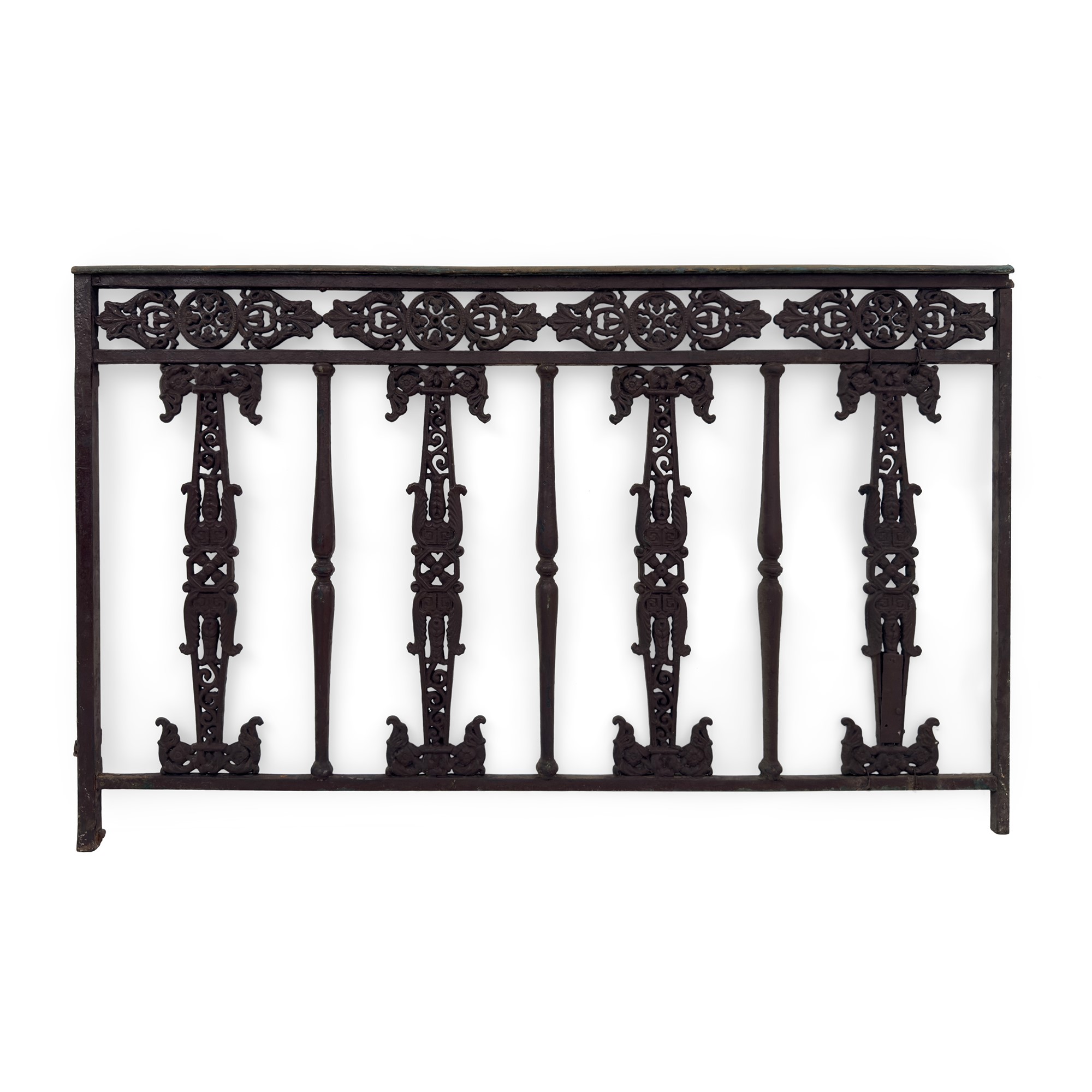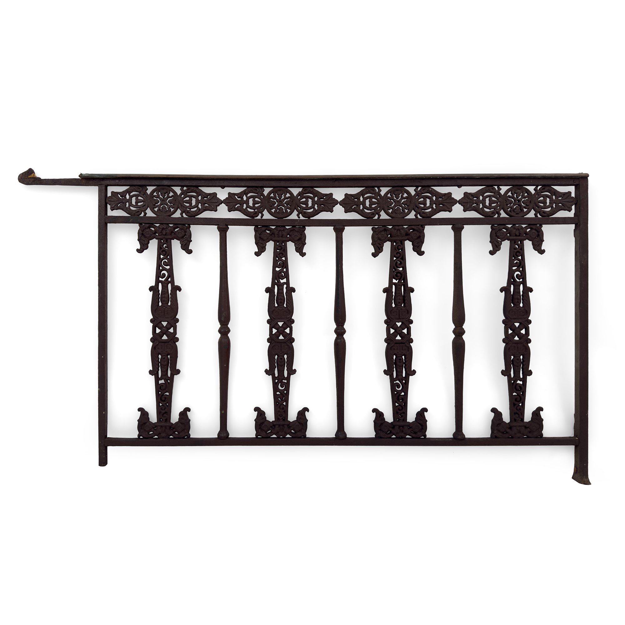 traforato a motivi neoclassici quali cornucopie affrontate traboccanti frutti sui quali posano volatili; due ante nella parte centrale sormontate da volute fogliate, cm. 103x380 circa (altezza massima calcolata alle volute delle ante)