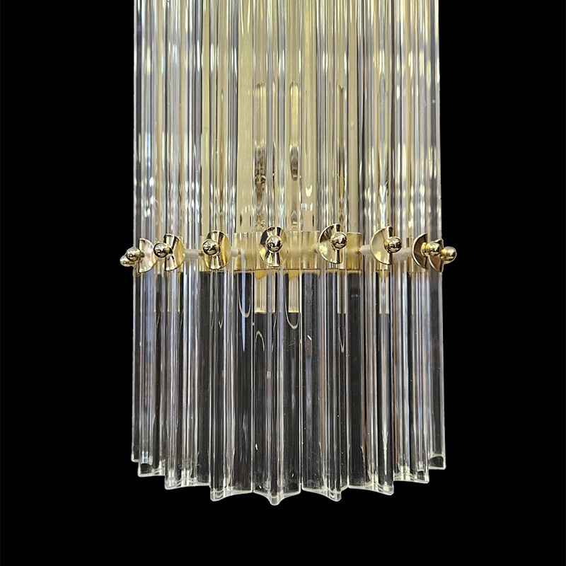 struttura in metallo dorato qualificata da elementi lineari in vetro incolore a sezione triangolare, h. cm. 71