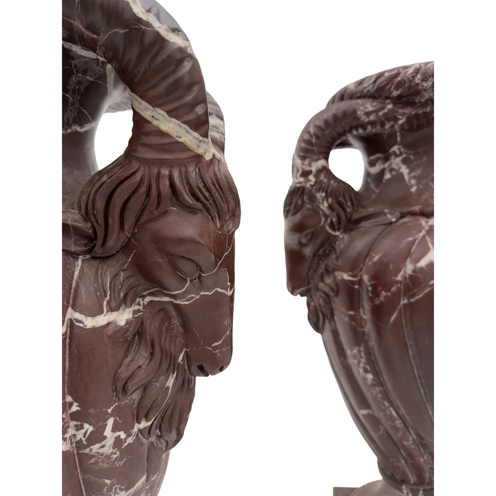 corpo ovoidale scolpito a baccellature elicoidali; due anse a testa di caprone; piede quadrato, cm. 80x44
