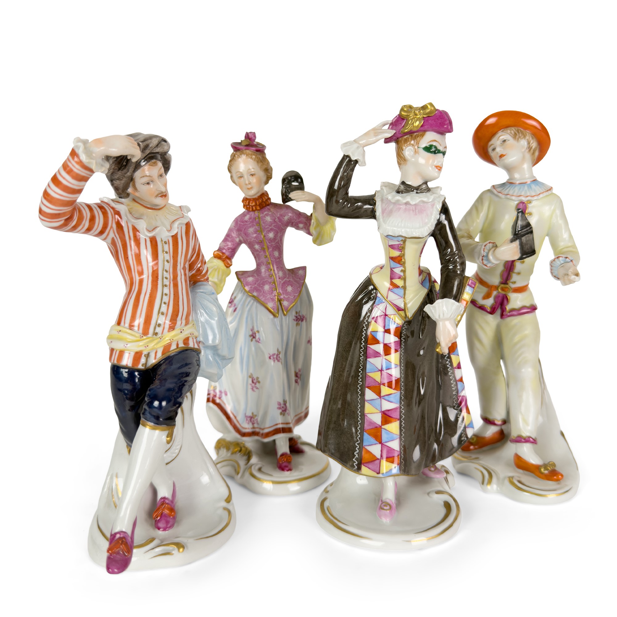 ciascuna raffigurante una maschera del carnevale, h. cm. 20 circa