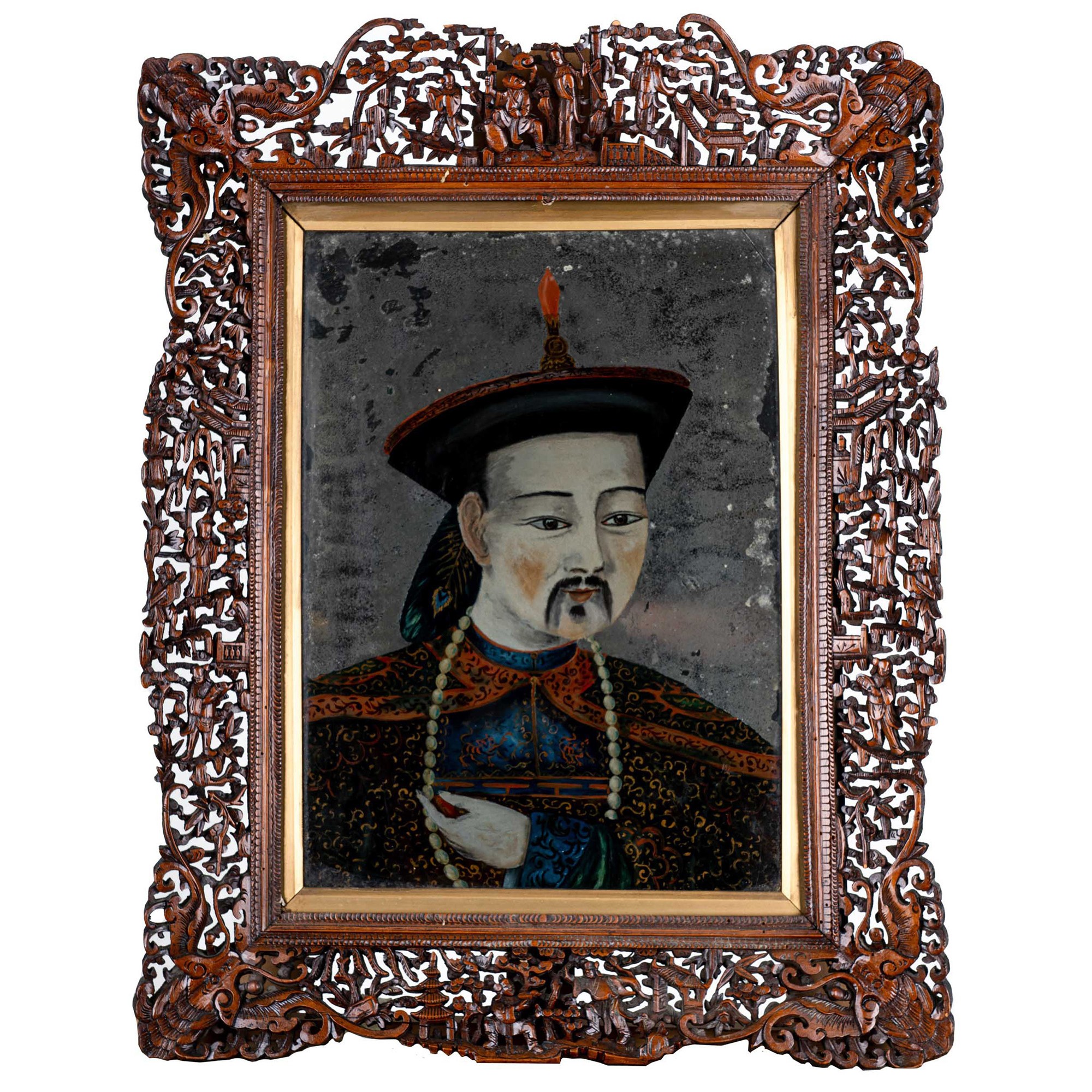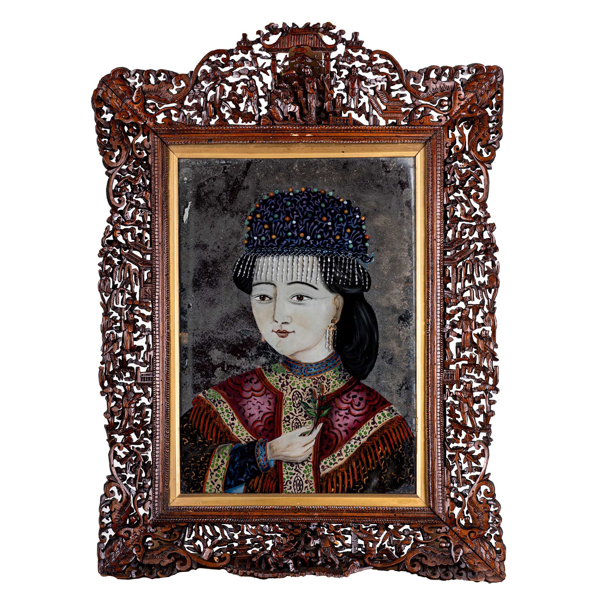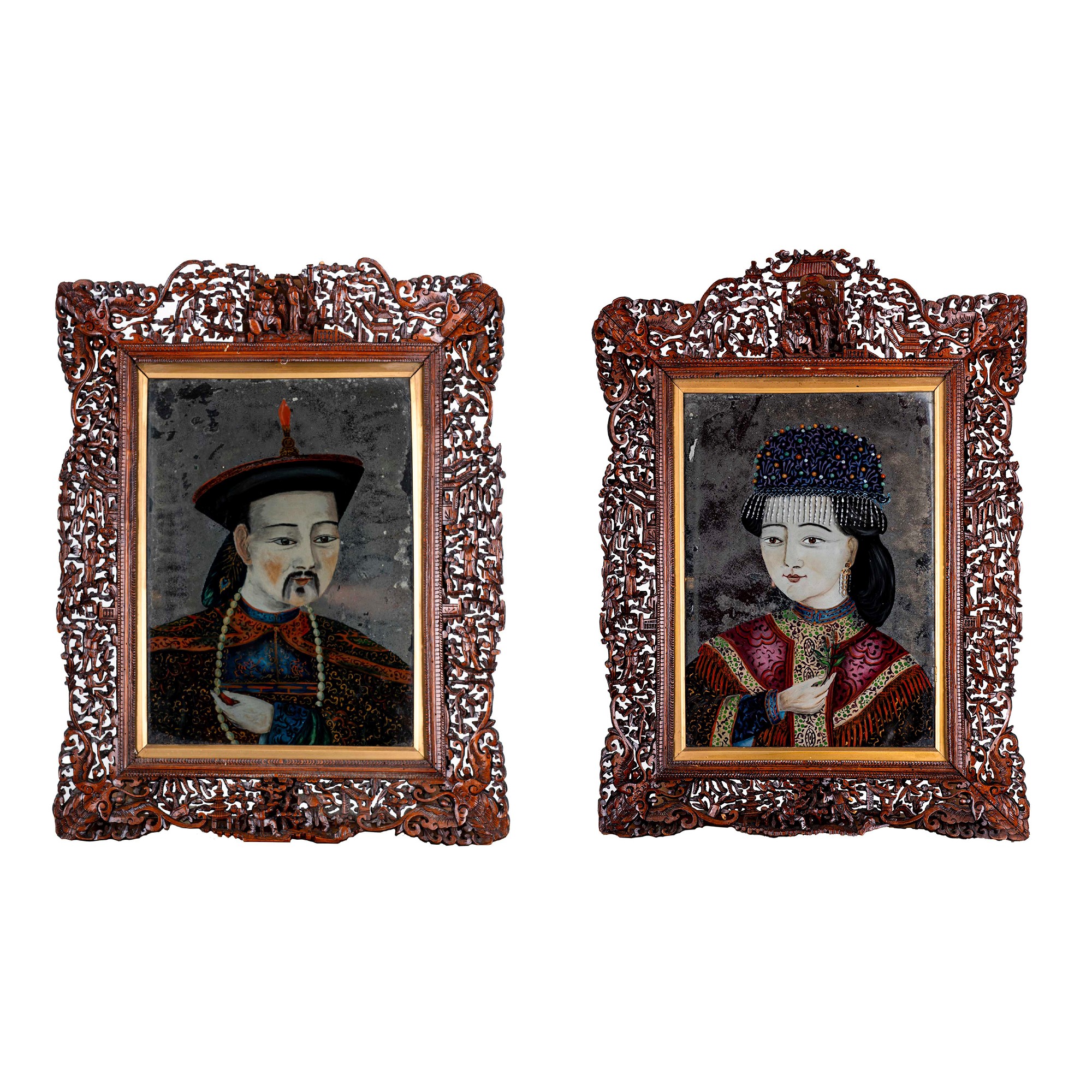 Coppia di dipinti su specchio, dinastia Qing, fine del XIX secolo