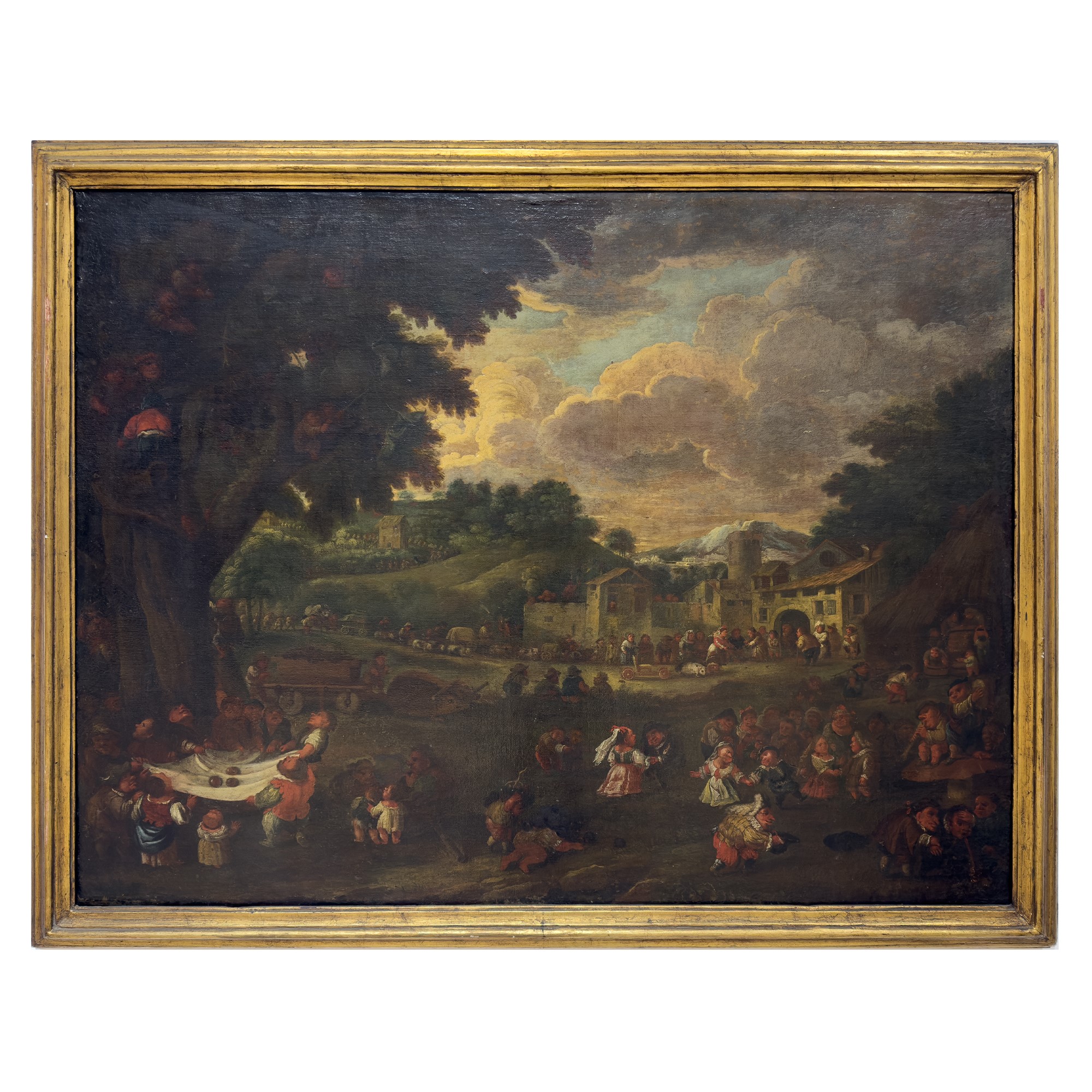 Per il Ballo di Nozze, del tutto simile al nostro, si veda: M.Olivari, Faustino Bocchi e l’arte di figurar pigmei 1659-1741, Milano, 1990, p. 98, n. A 67 (come La Vendemmia)