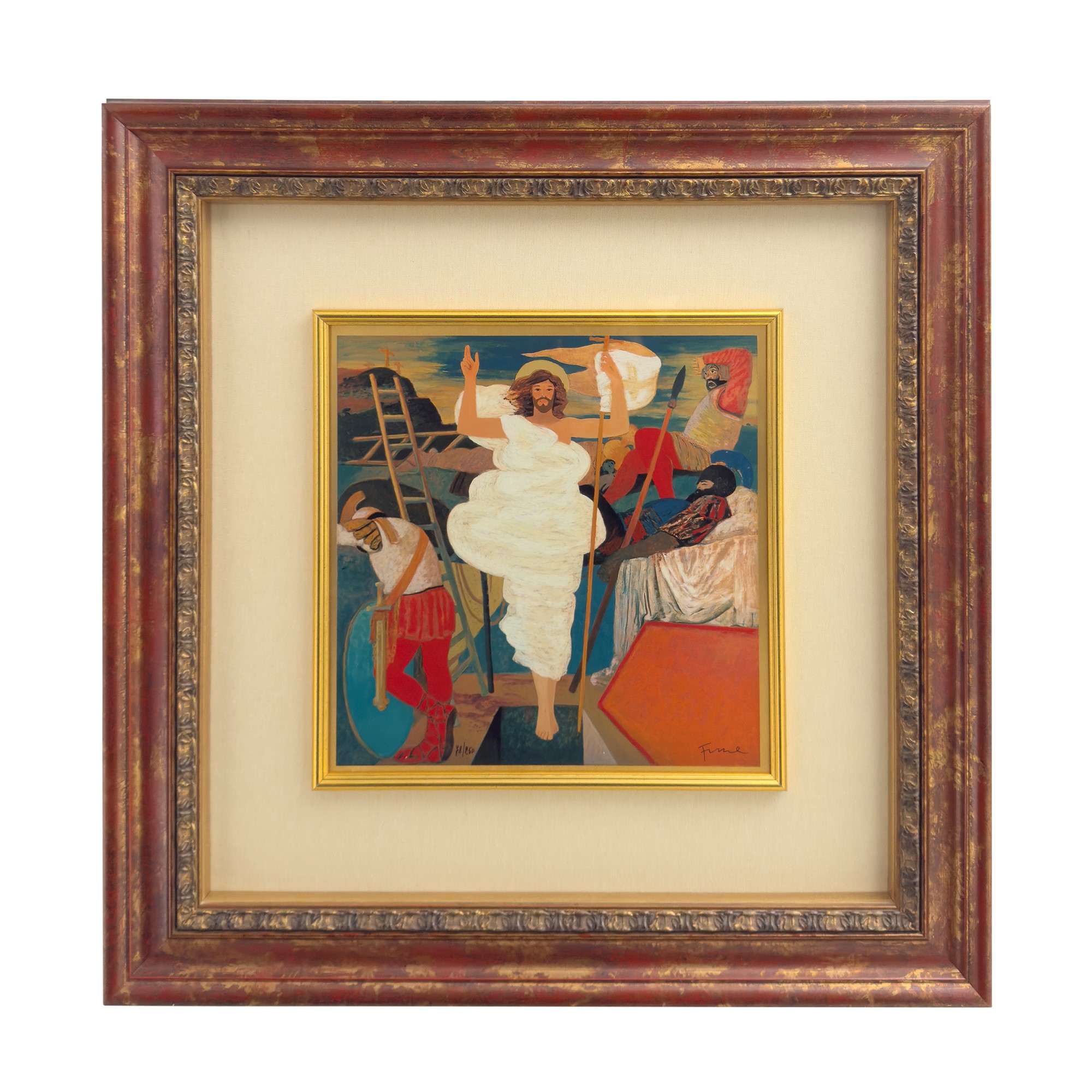 serigrafia su lastra dorata, ex. 78/250, la lastra: cm. 34x35