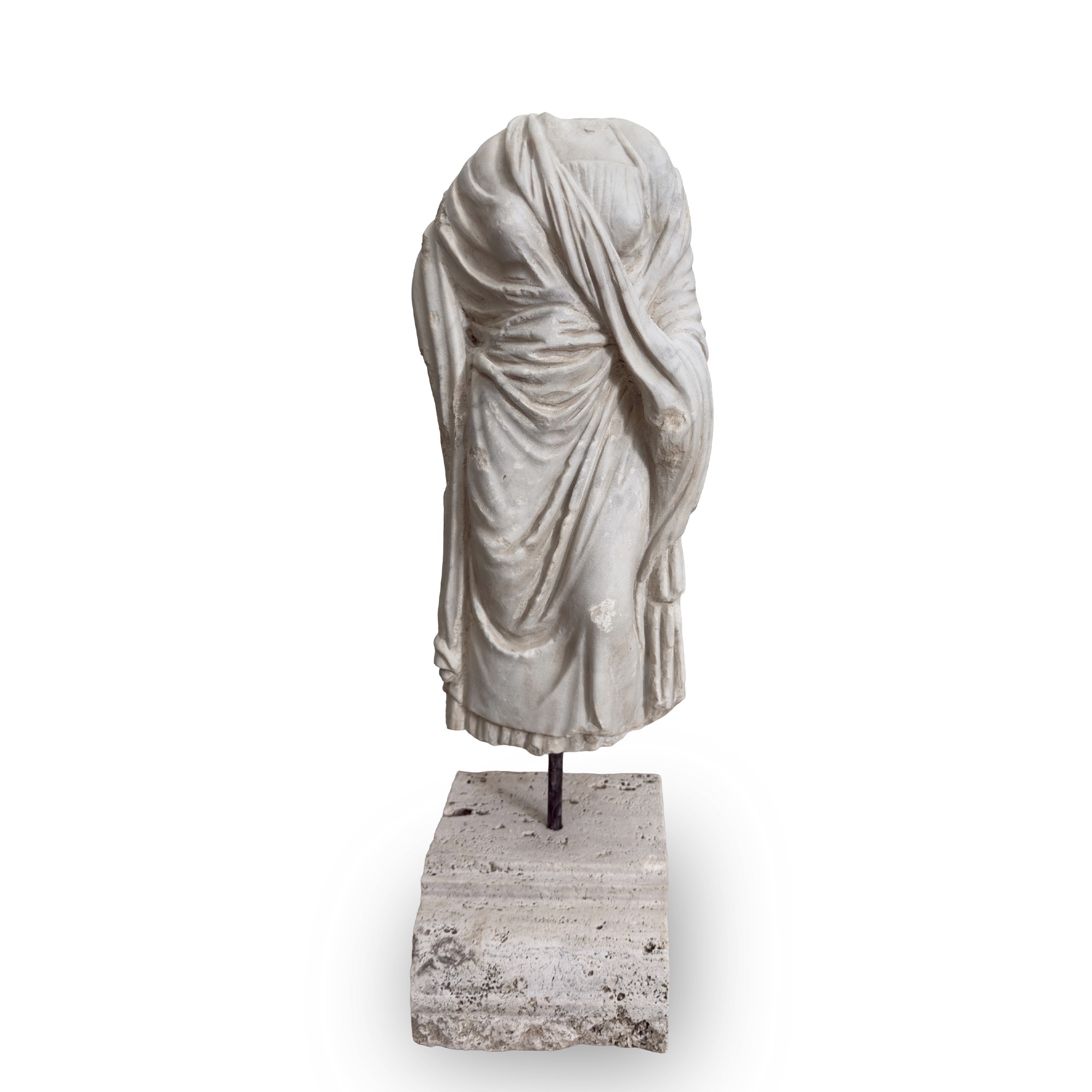 base modanata in travertino, il torso: h. cm. 47; complessivamente h. cm. 68