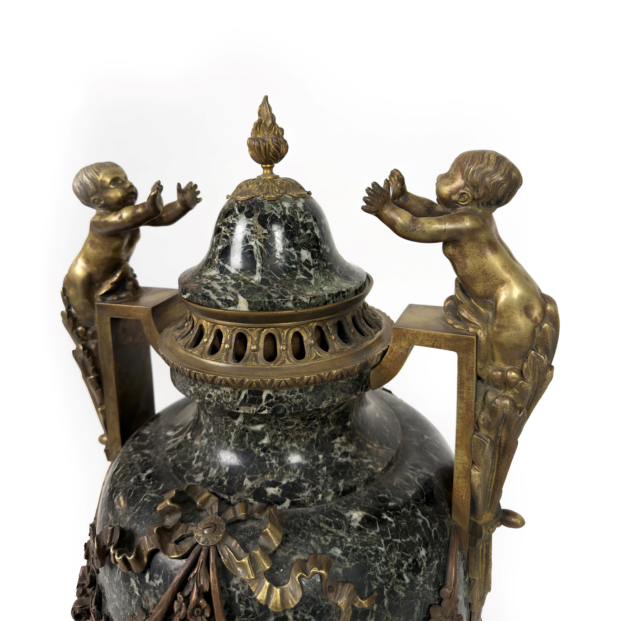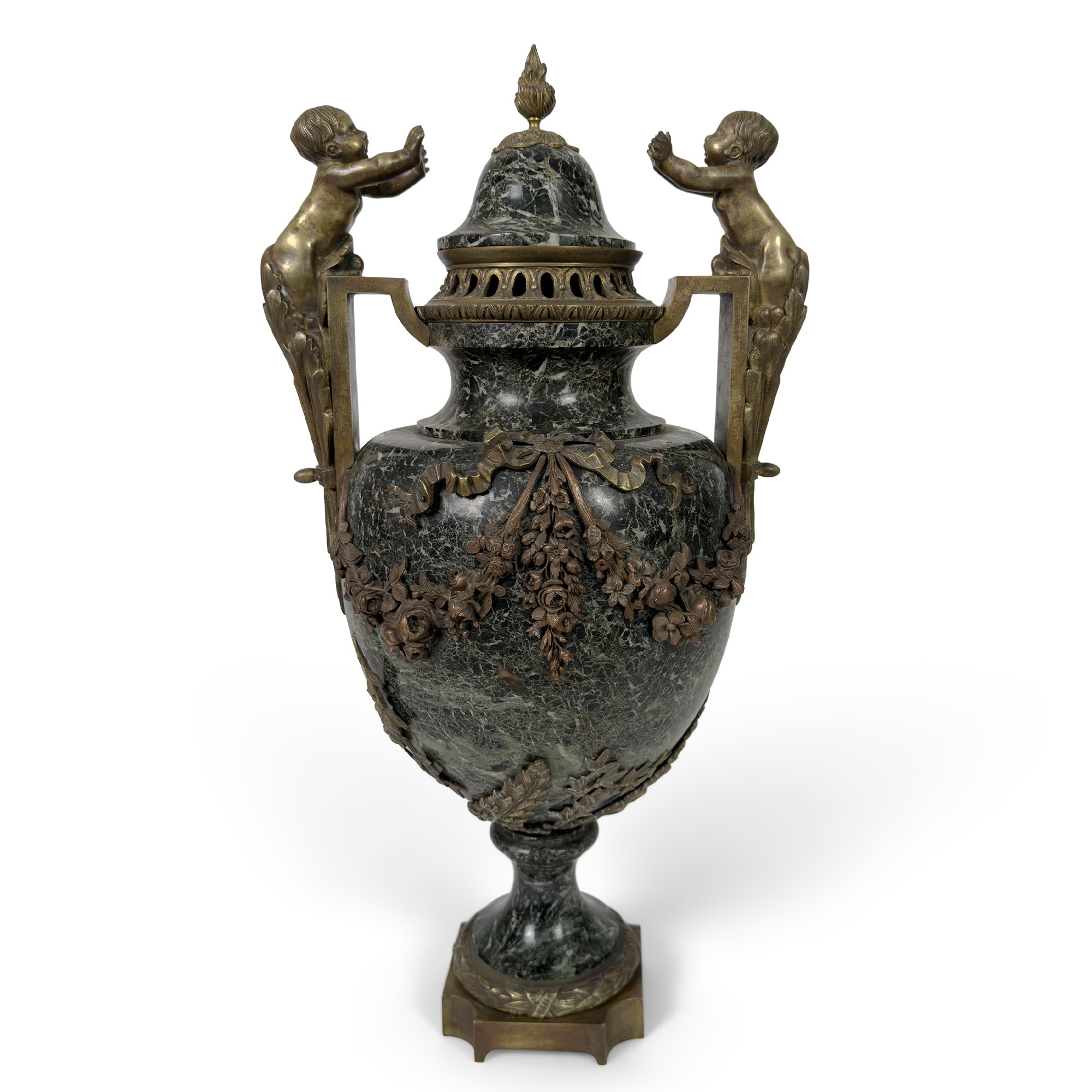 Vaso con coperchio in marmo verde montato in bronzo dorato