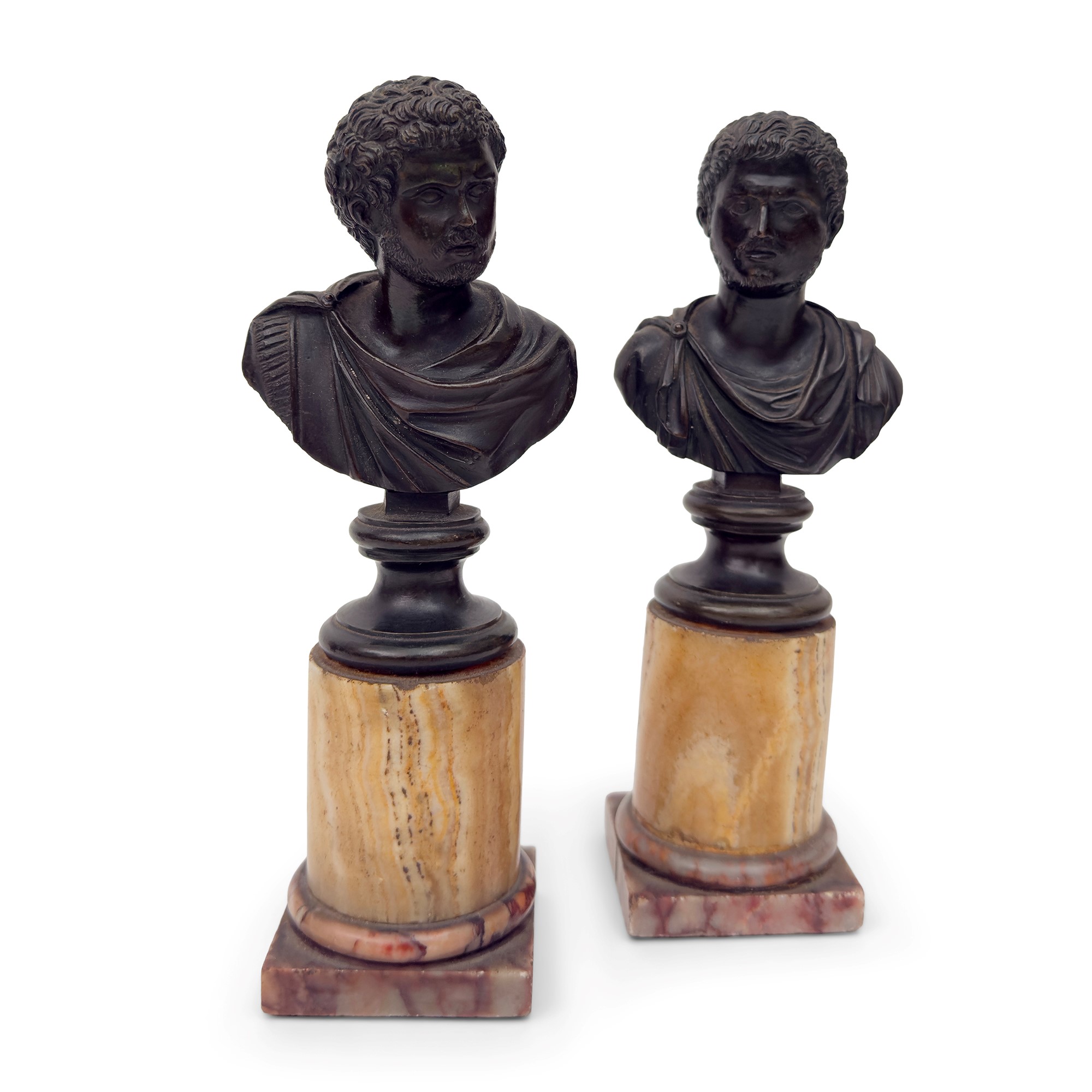 Coppia di bustini di imperatori romani in bronzo patinato, inizi del XIX secolo