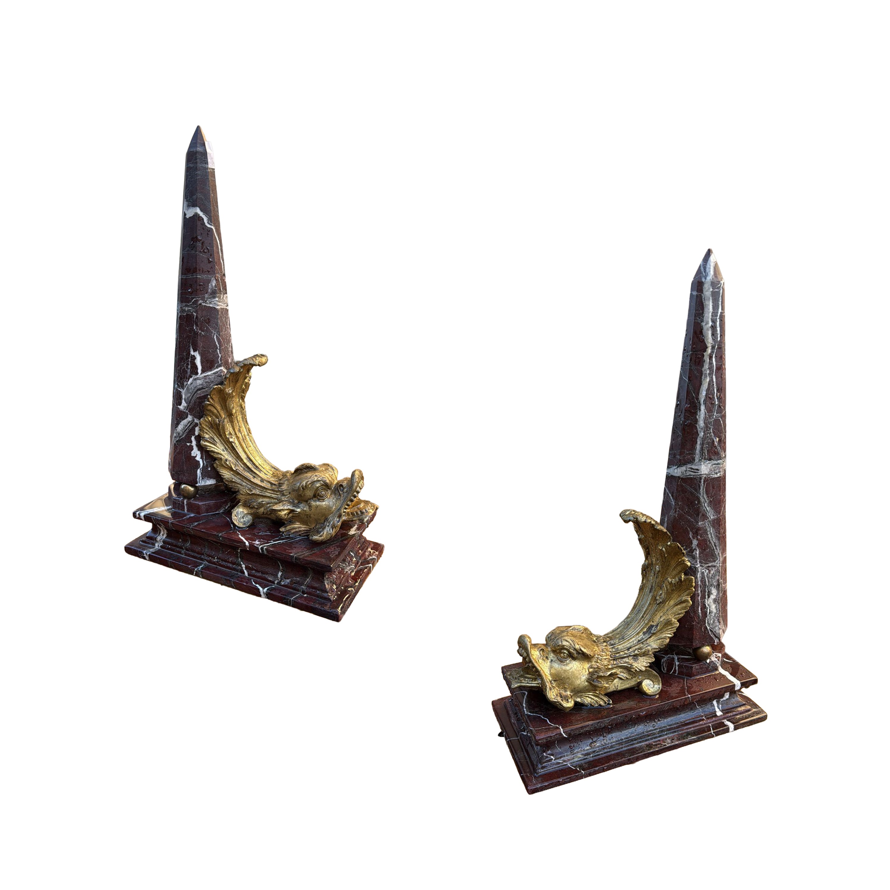 Coppia di obelischi sfaccettati in marmo rosso Levanto