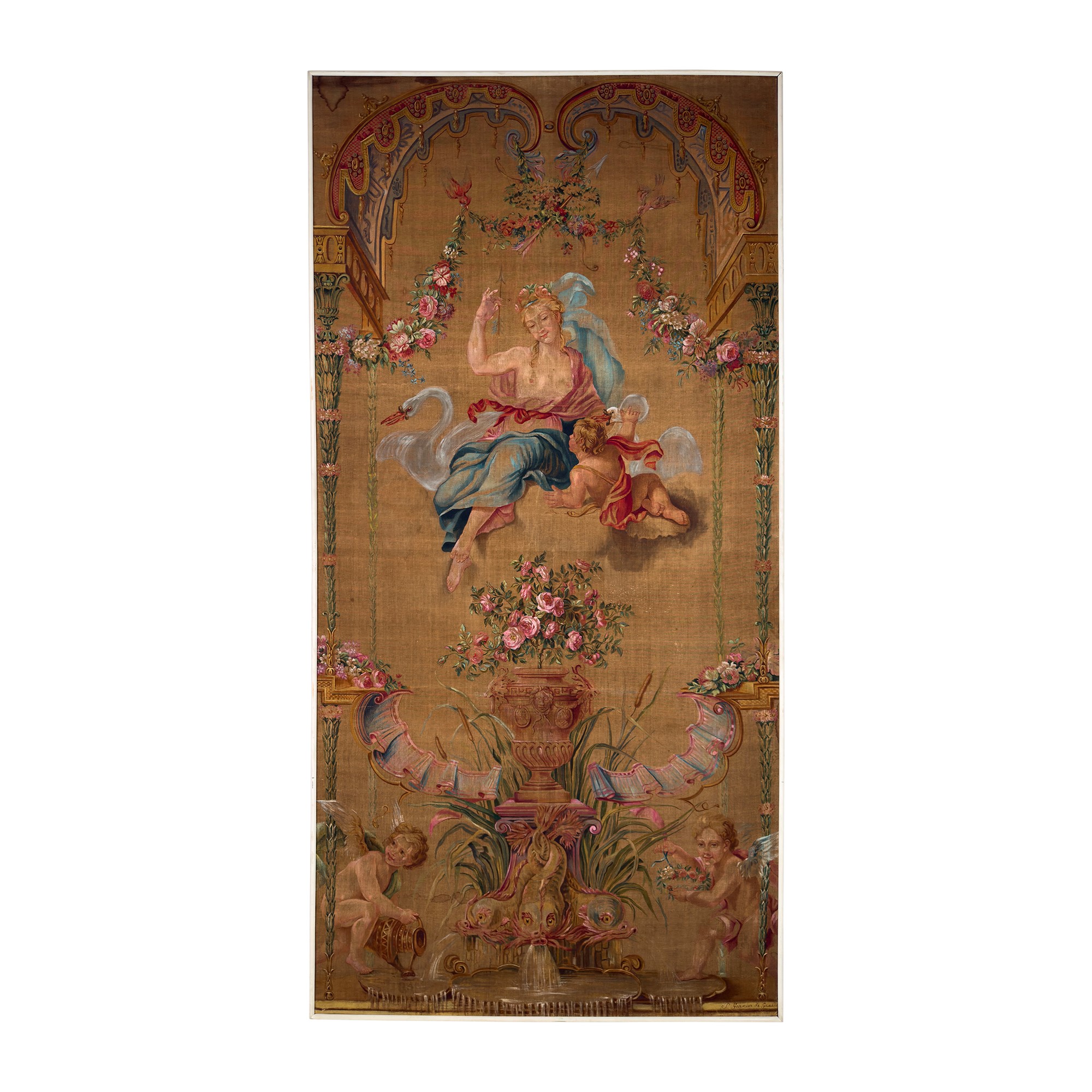 Coppia di pannelli dipinti su tela, Francia, fine del XIX-inizi del XX secolo