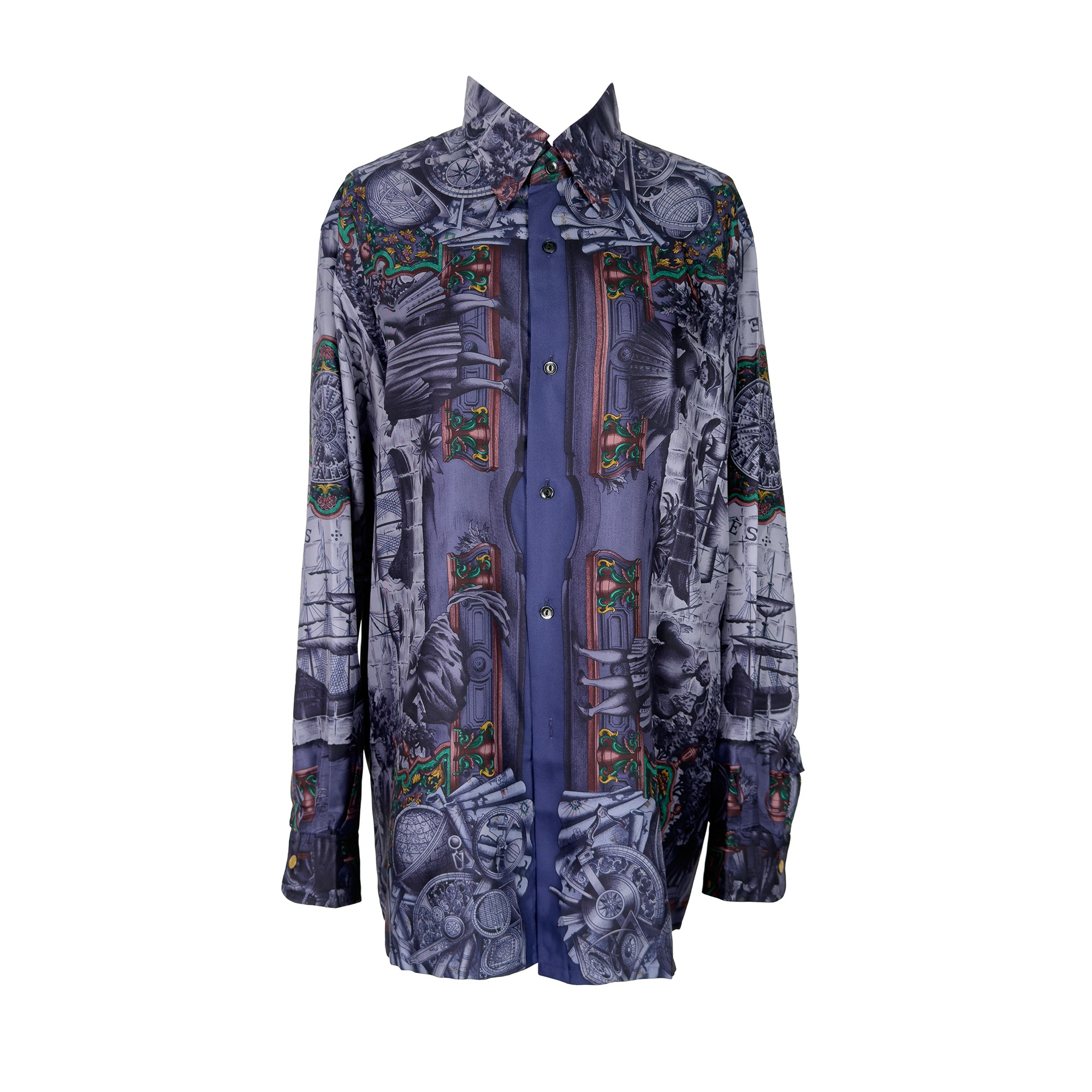 Azulejos, camicia da uomo in seta a fondo blu/viola, tg. 42
