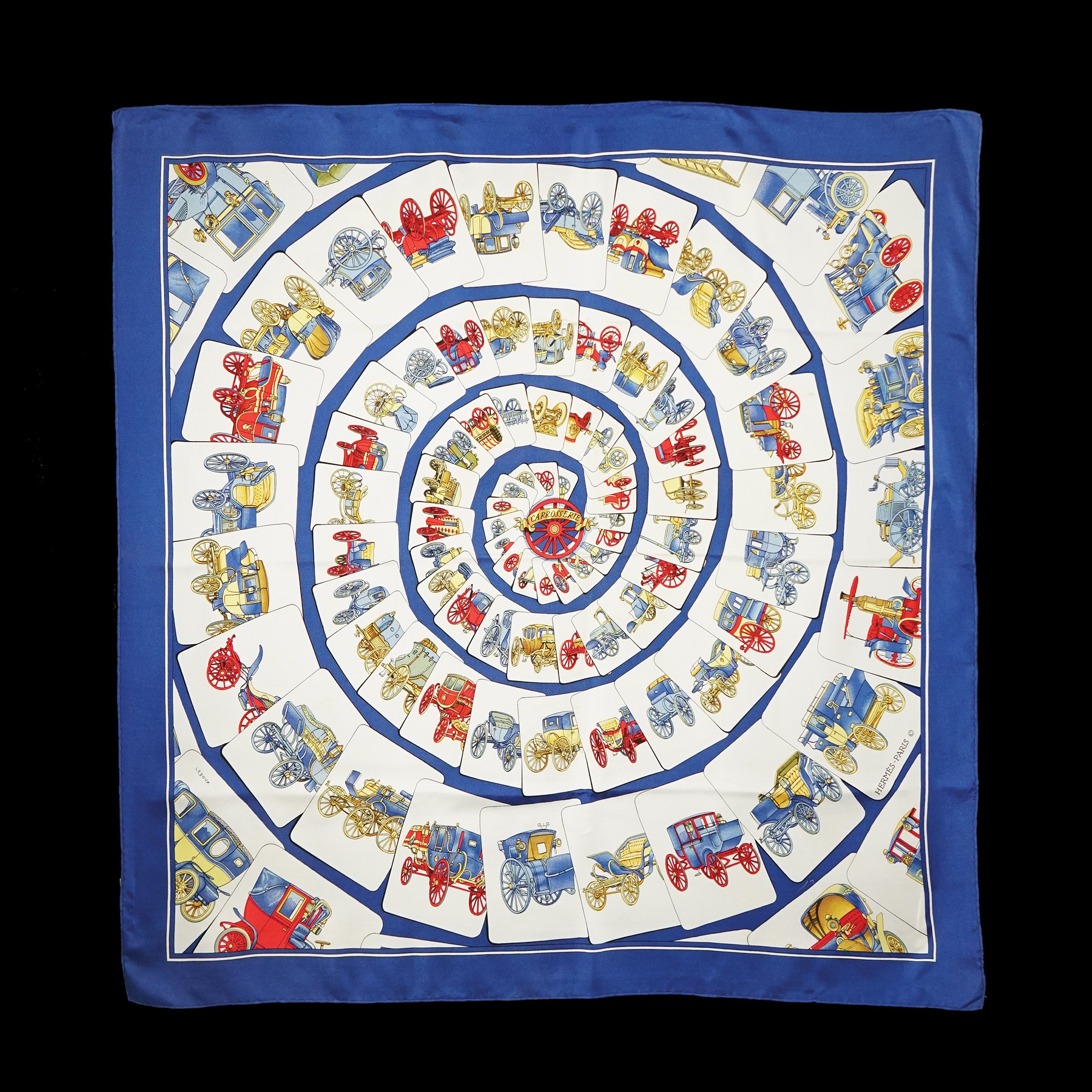 Carrosserie, carré in seta su disegno di Philippe Ledoux del 1975, cm. 90x90