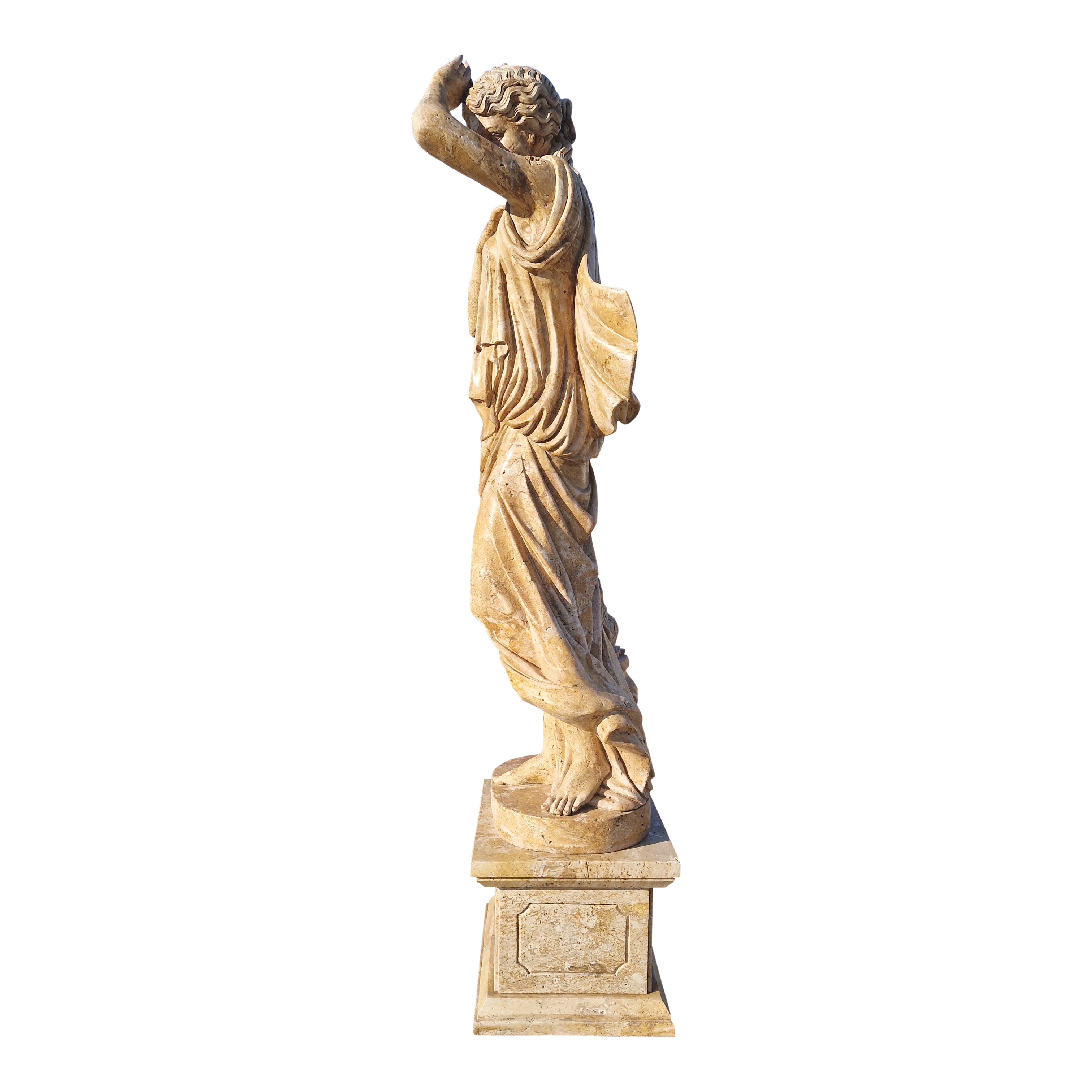 base quadrata parimenti in travertino, cm. 225x90x51.