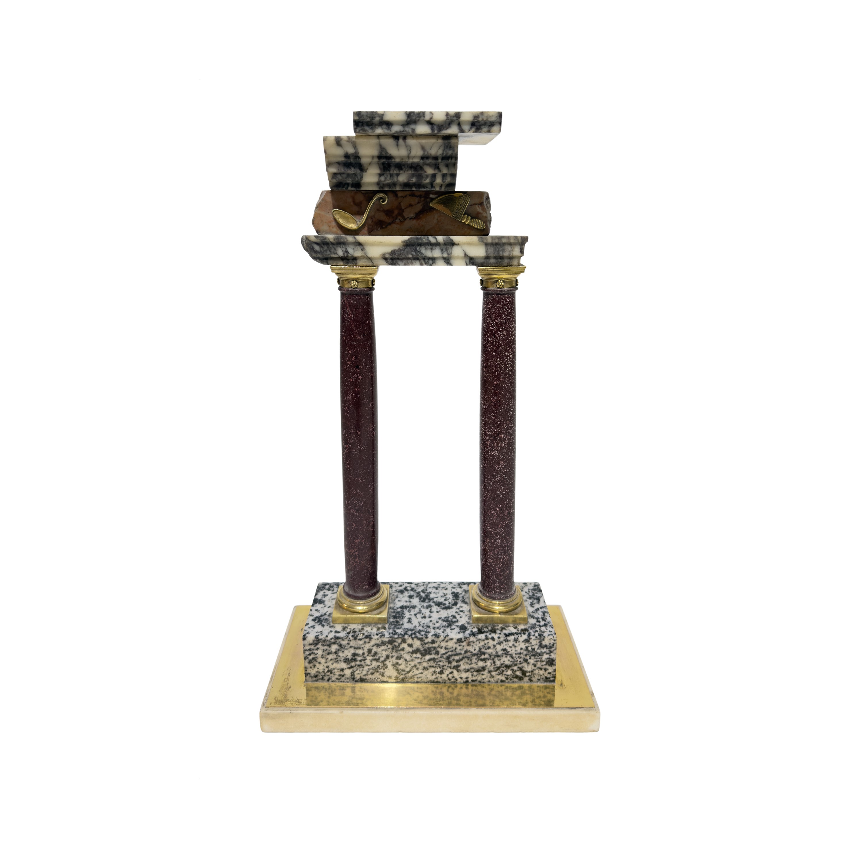 in porfido egiziano, granito del Foro, pavonazzetto e portasanta, con guarnizioni di bronzi dorato, cm. 47x27x11