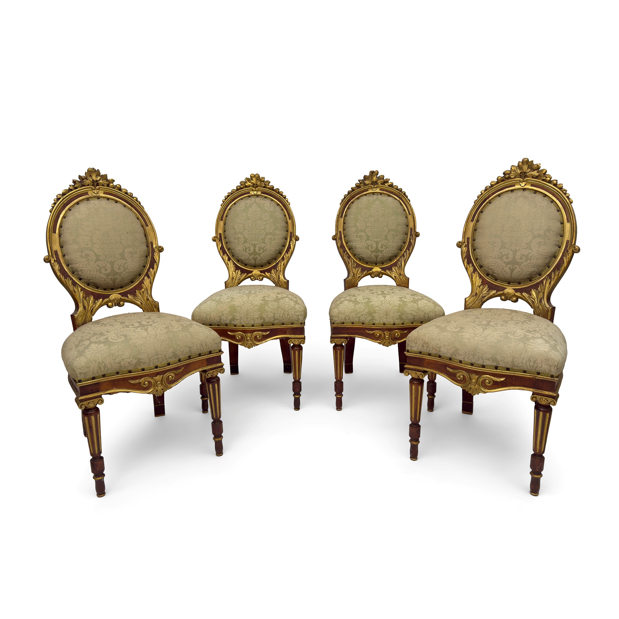 Quattro sedie di noce parzialmente dorato, XIX secolo