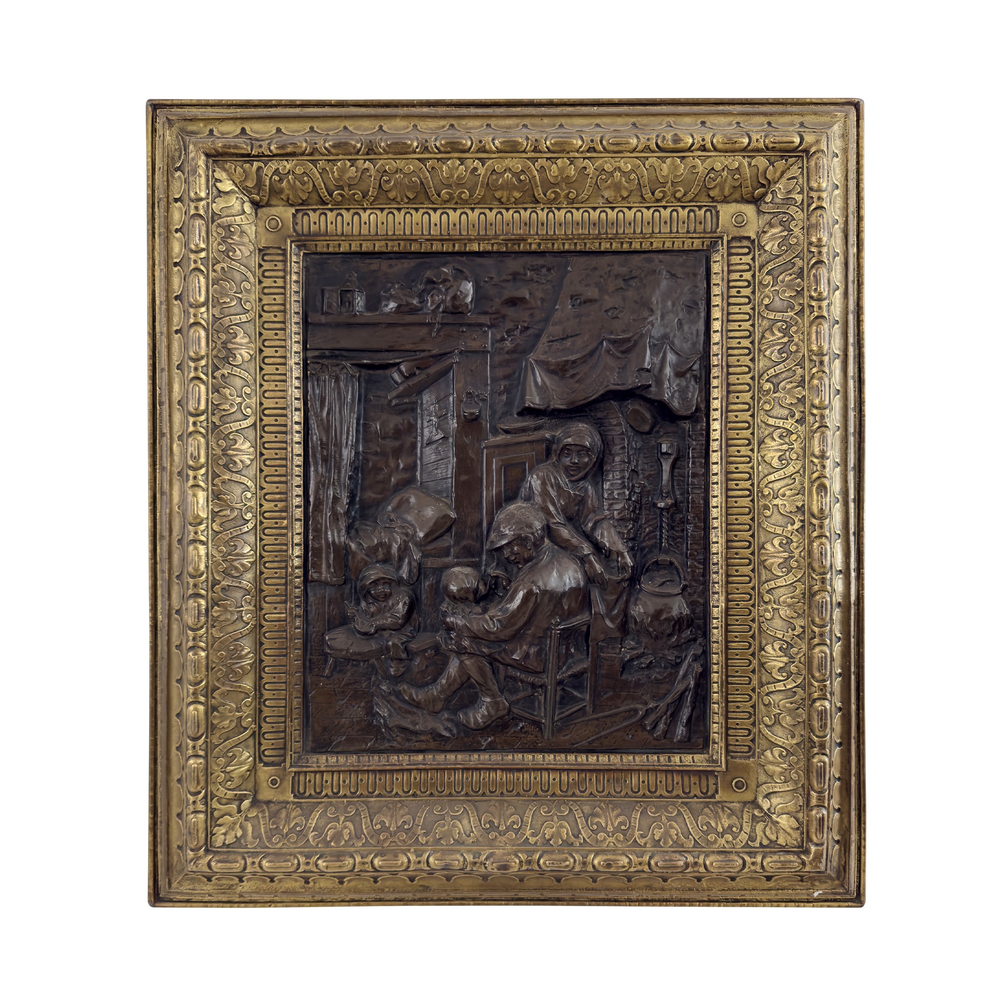 cornice in rame dorato e sbalzato, complessivamente cm. 80x70