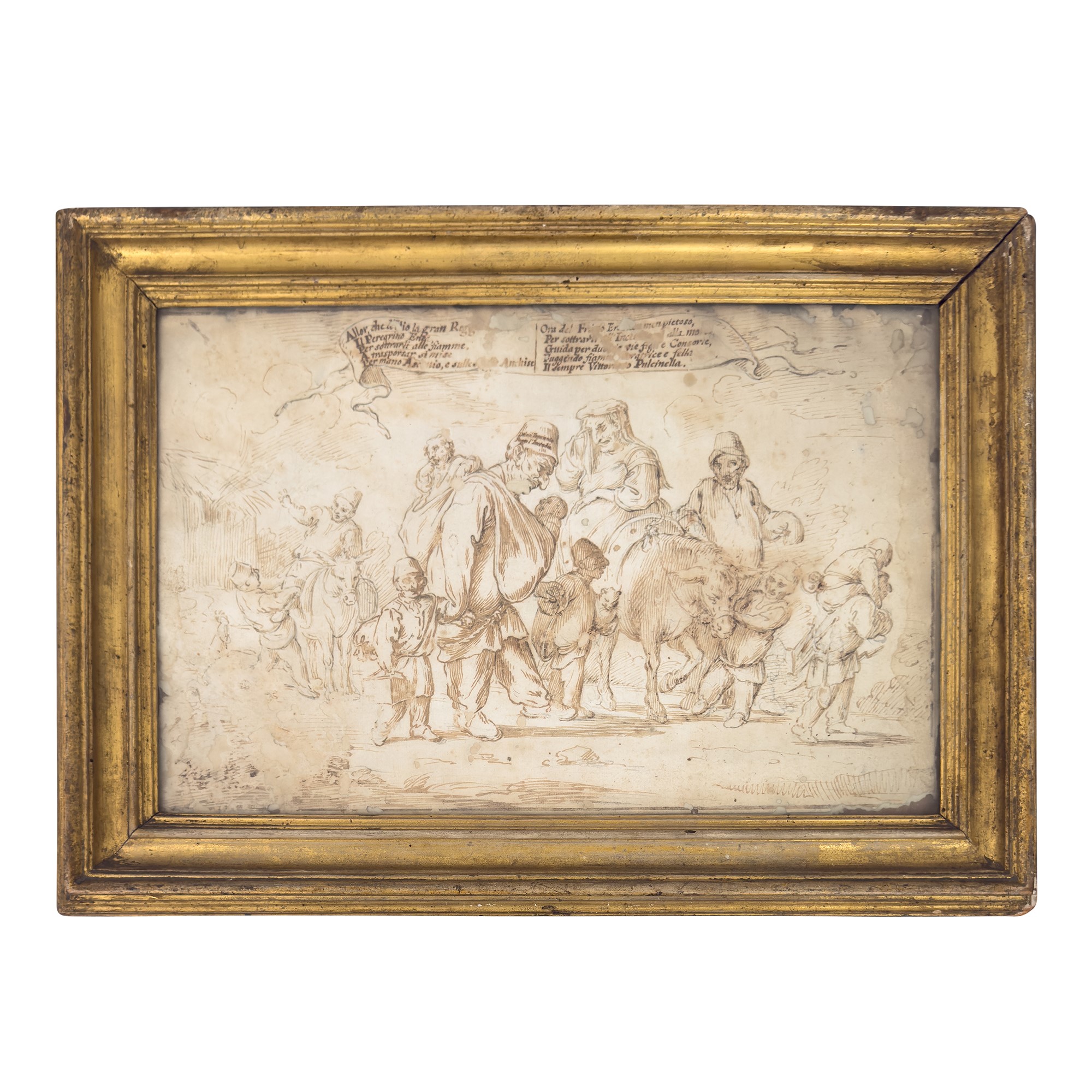 cm. 26,5x41,5; cornice coeva di legno dorato (difetti alla carta)