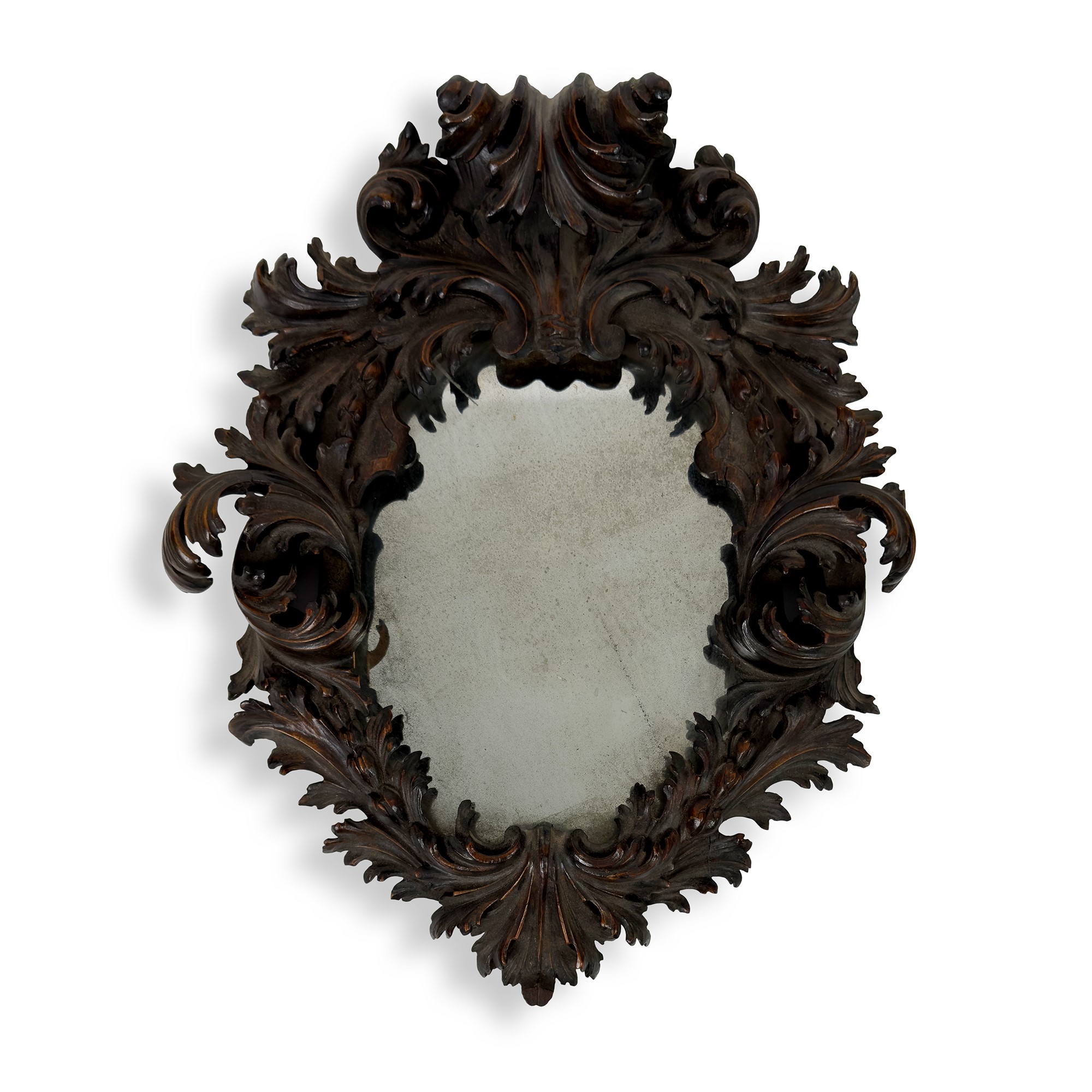 cornice riccamente scolpita a corpose volute fogliate dalle punte accartocciate, cm. 55x45 circa (lievi mancanze)