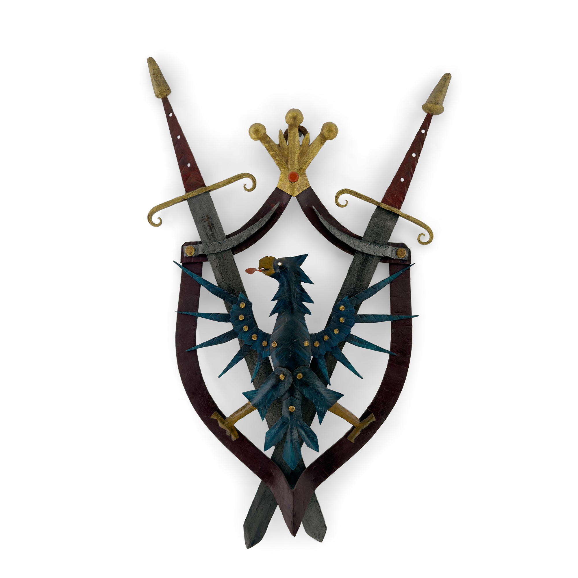 Stemma in ferro battuto in parte dorato e policromo