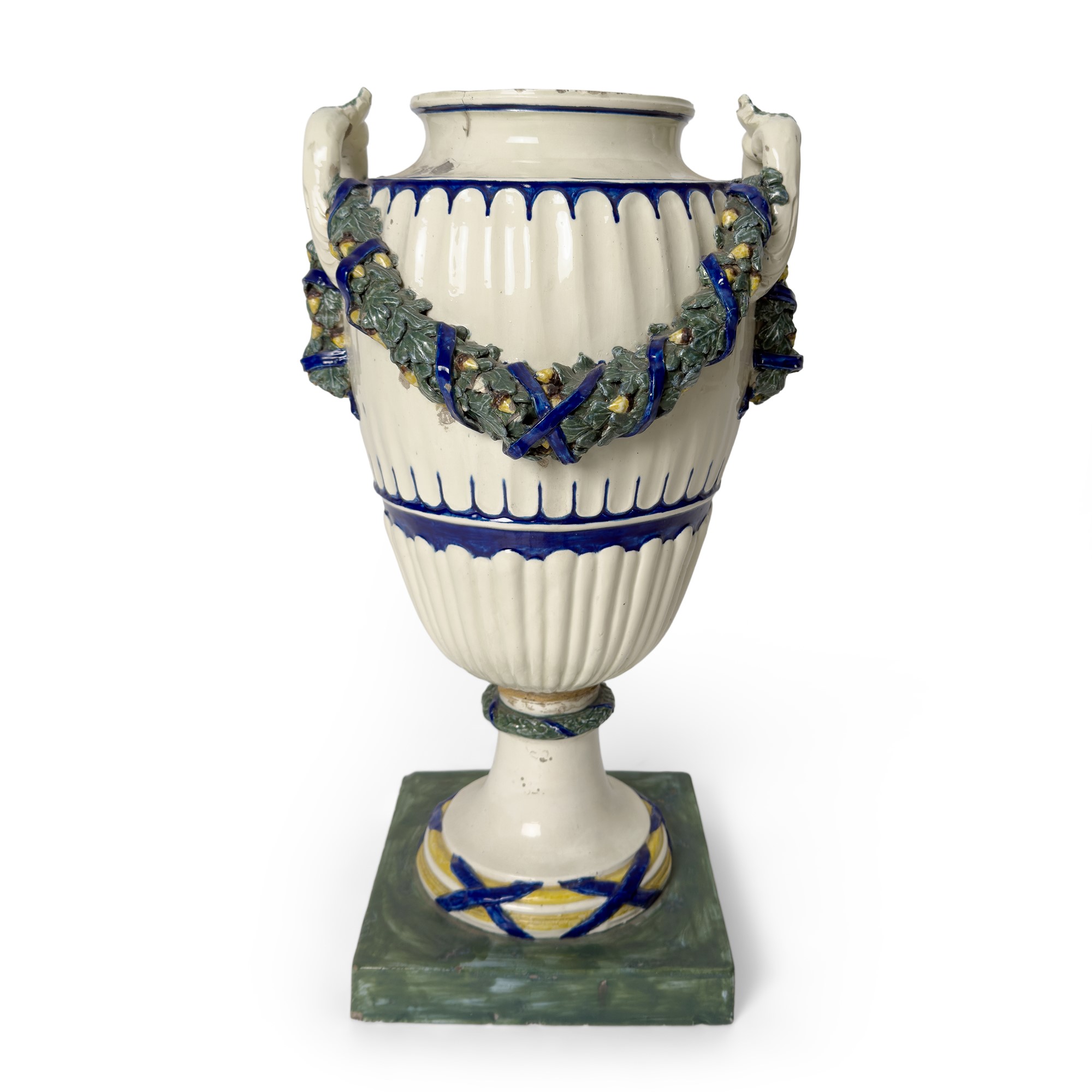 Vaso biansato in ceramica bianca e policroma, Napoli, XIX secolo