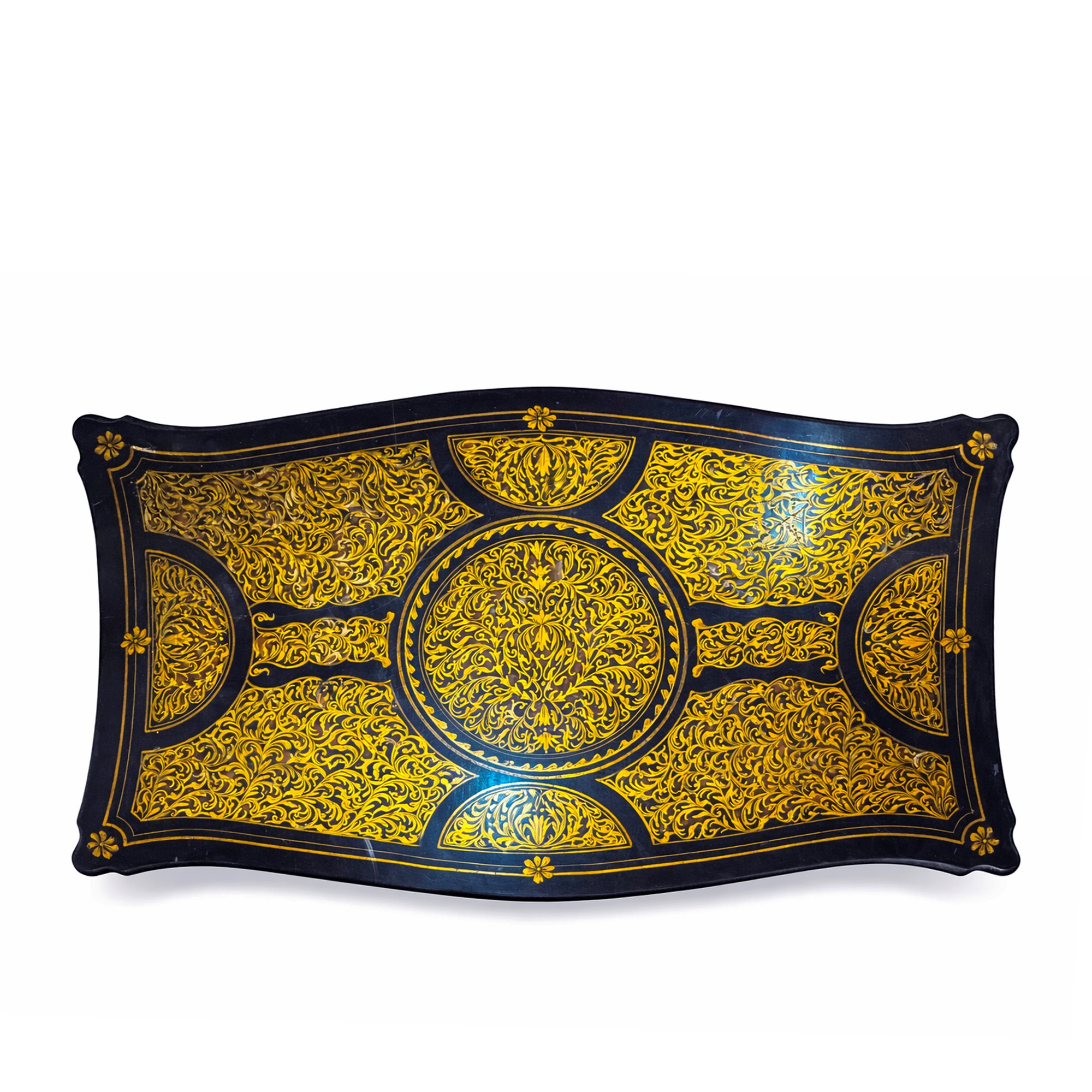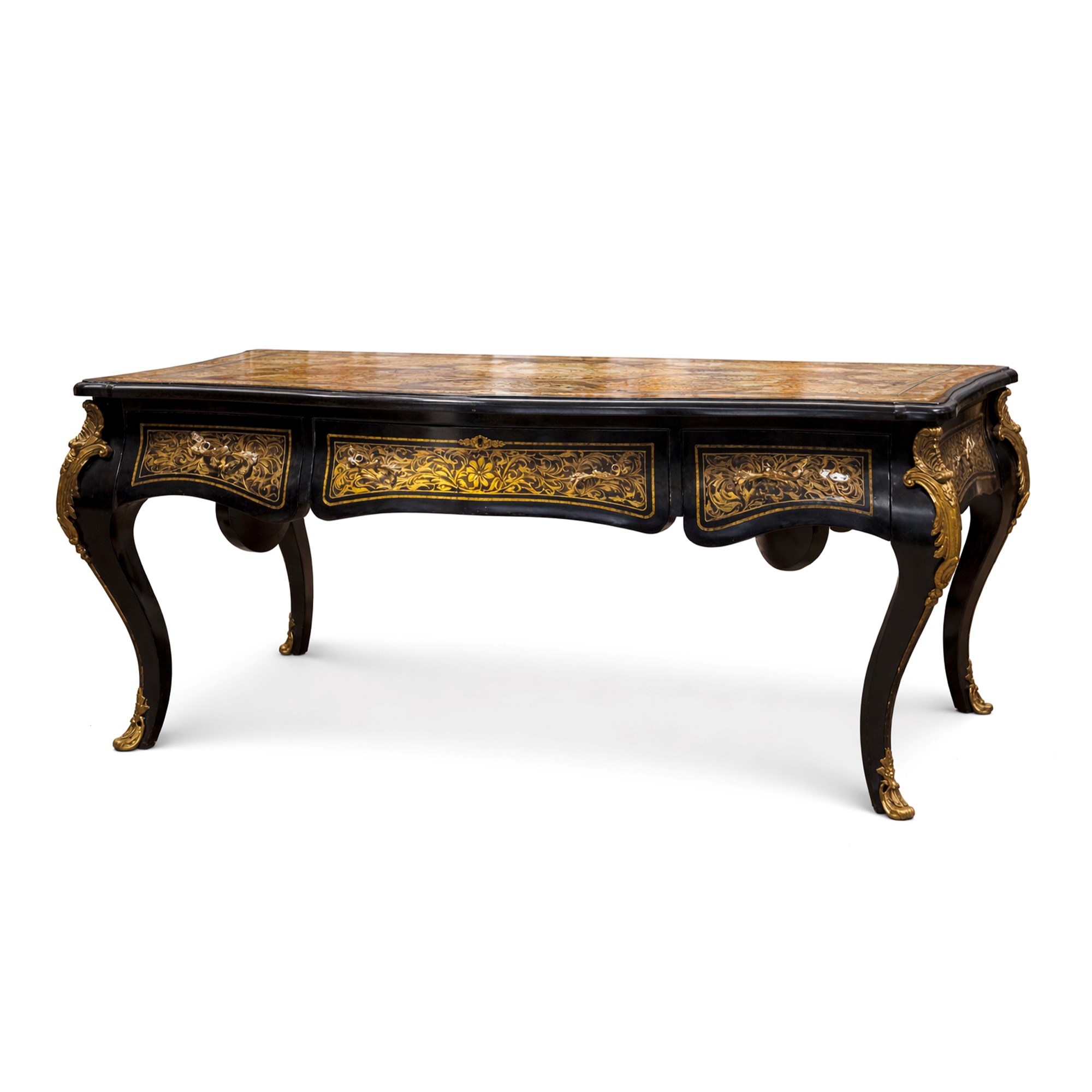Bureau plat in legno ebanizzato dipinto a simulare un intarsio alla maniera di Boulle
