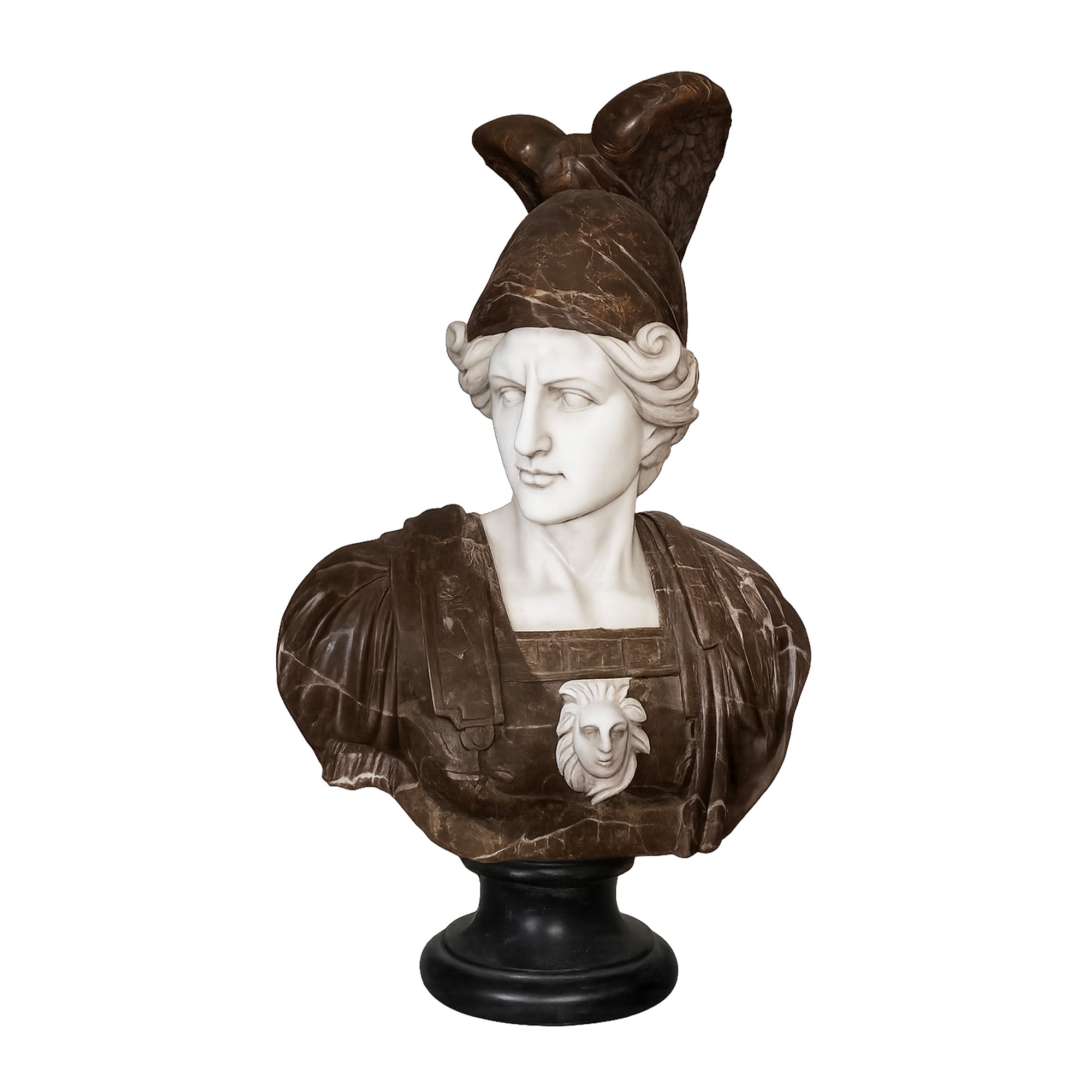 Busto di Minerva in marmo bianco e marmo venato