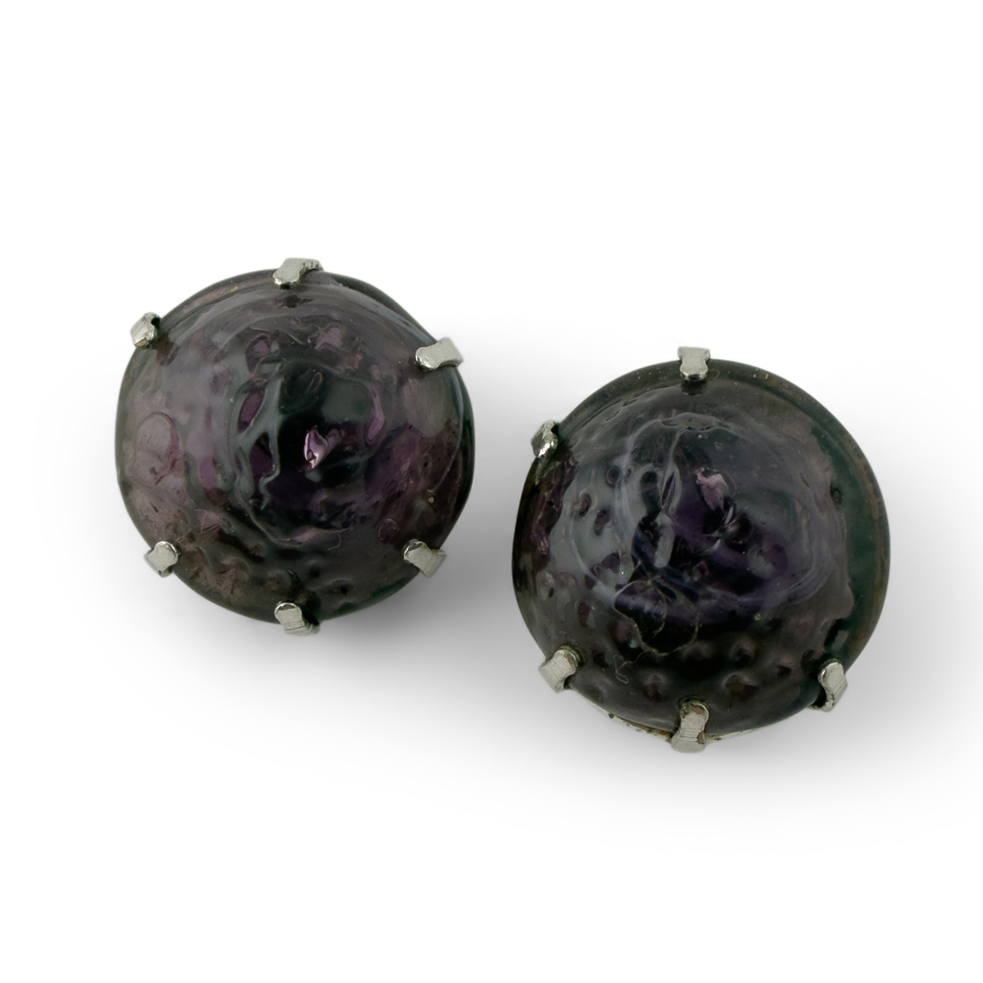 paio di orecchini in metallo argentato e vetro color ametista.