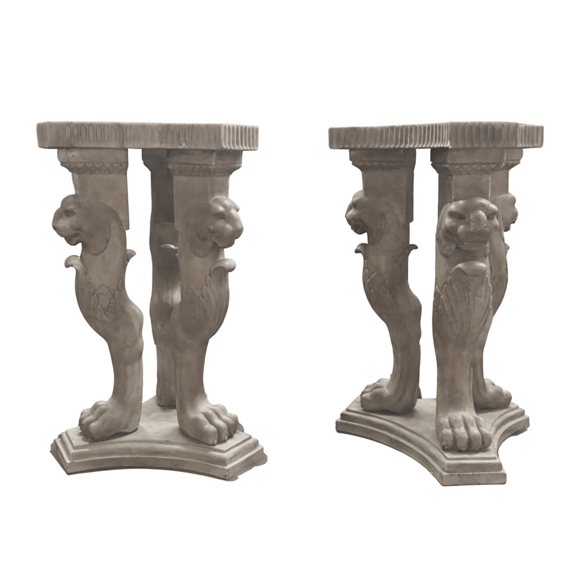 scolpiti a erma leonina si base trilobata, cm. 100x60x60