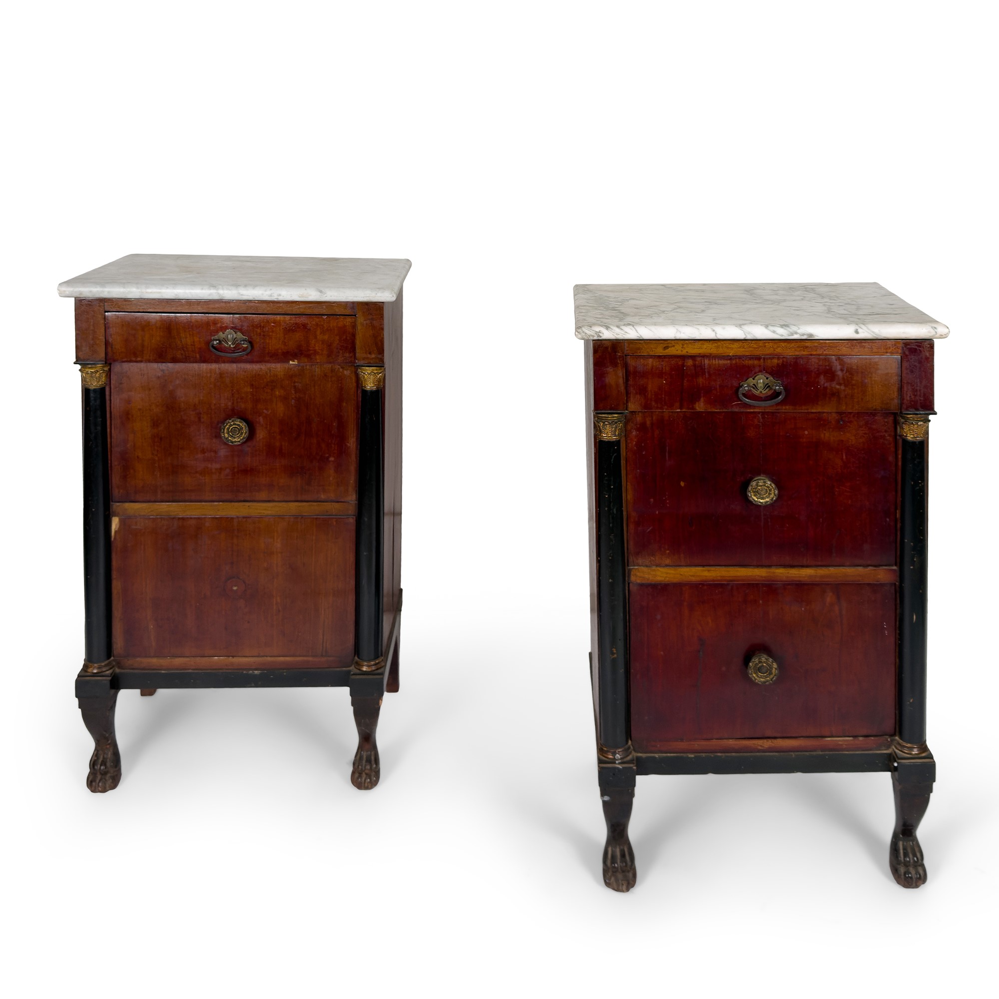 Coppia di comodini da notte di noce, Lucca, periodo dell'Impero