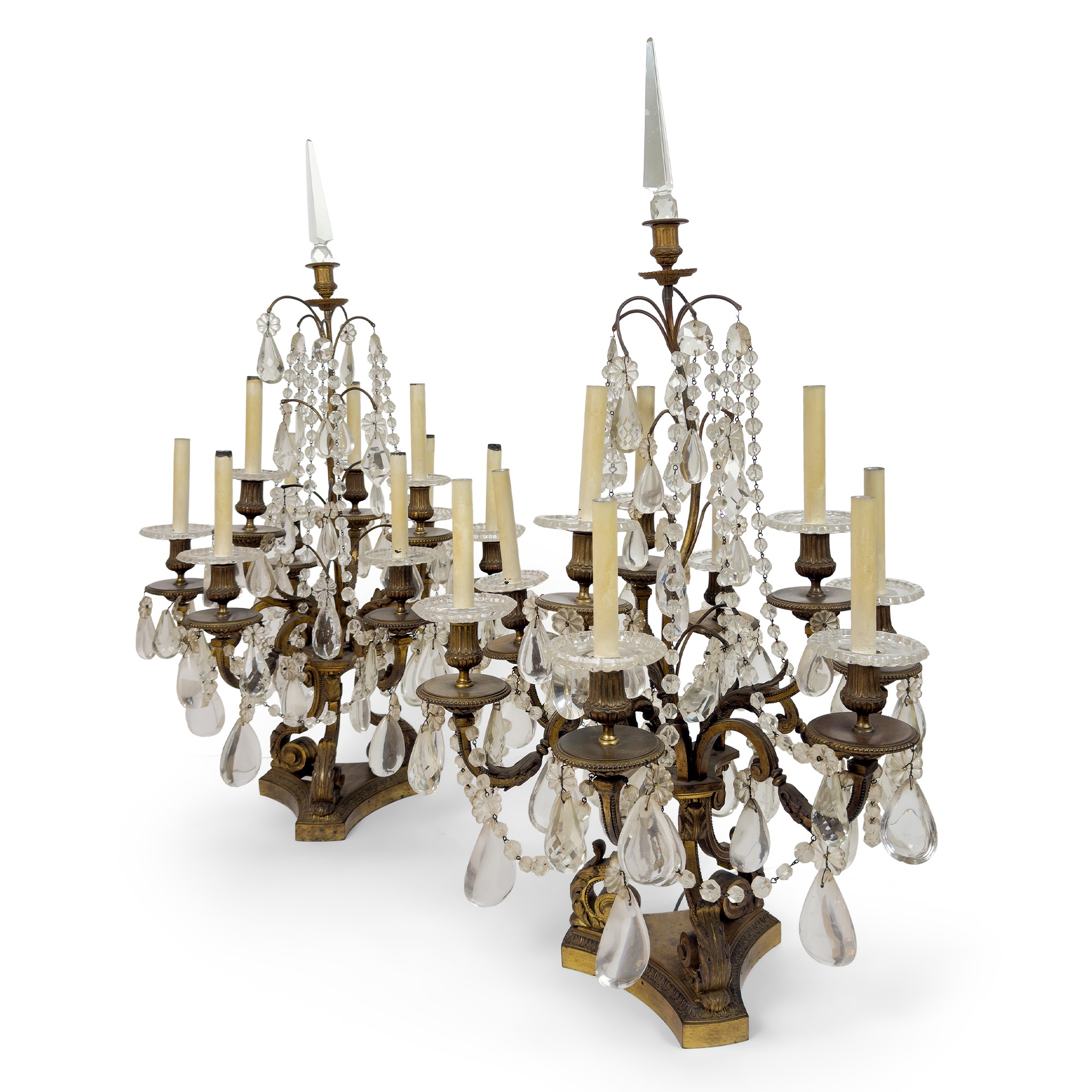 Coppia di girandoles in bronzo dorato a dieci luci ciascuna