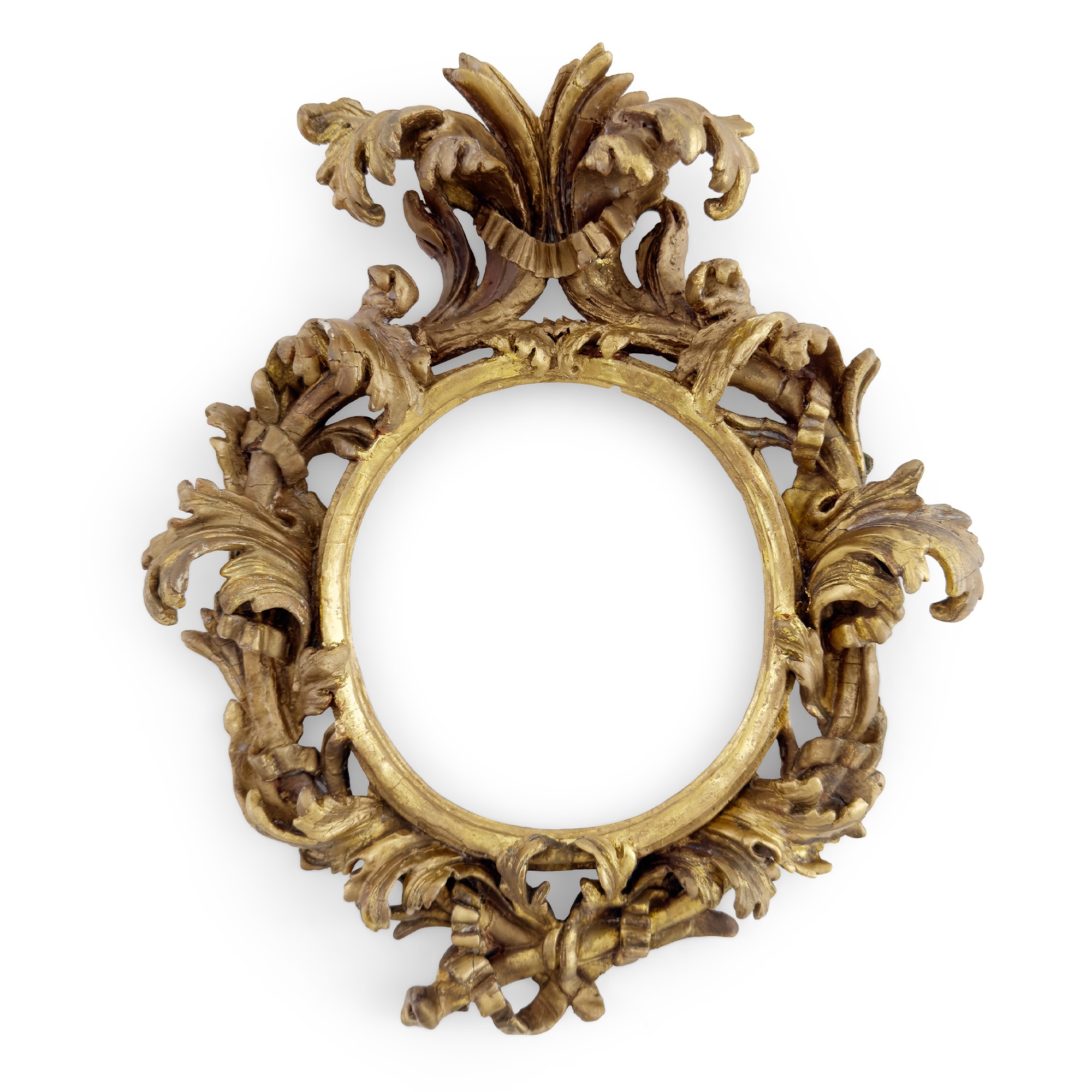 Cornice di forma ovale in legno dorato, Emilia, XVIII secolo