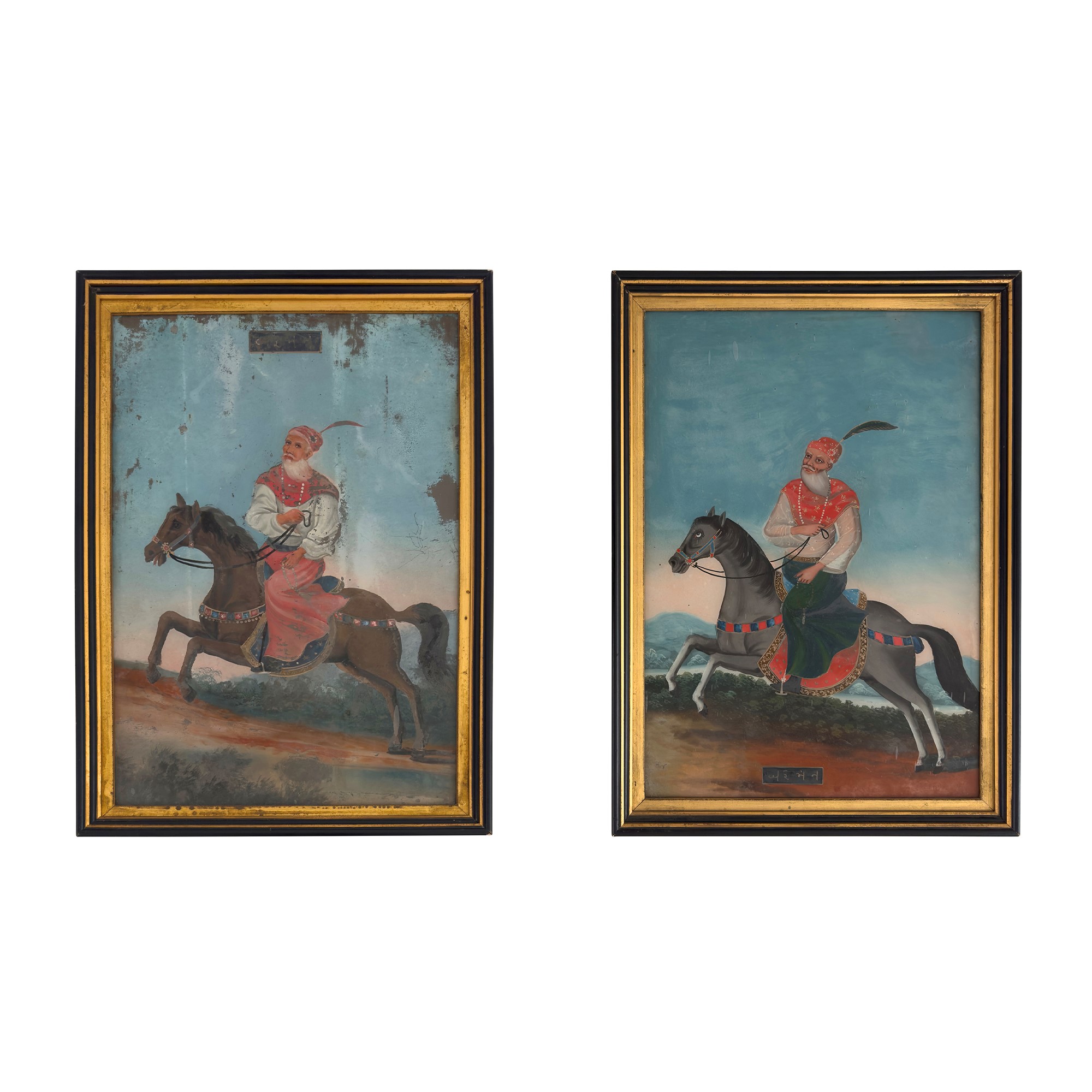 coppia di dipinti sottovetro, cm. 50x35 (cadute di colore)