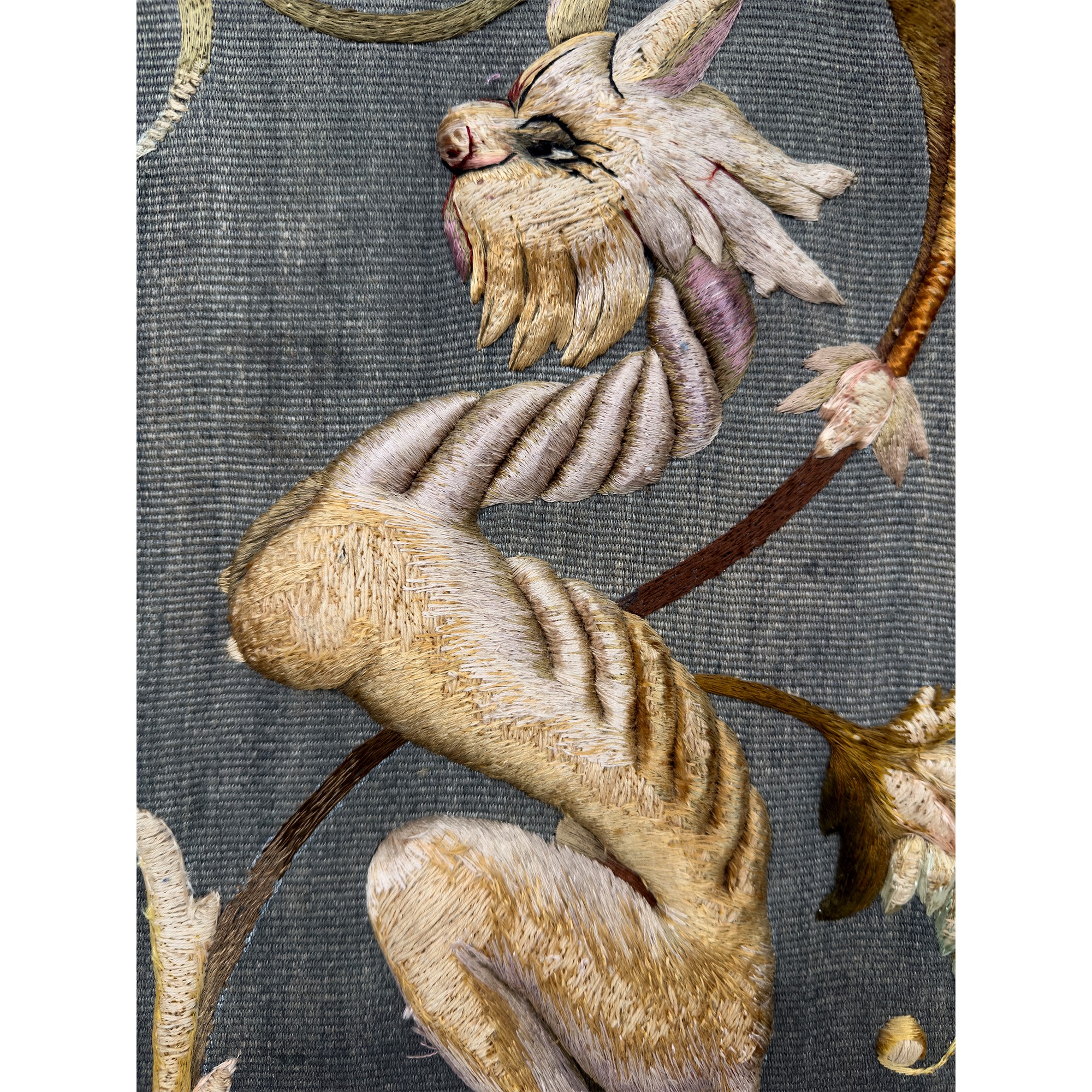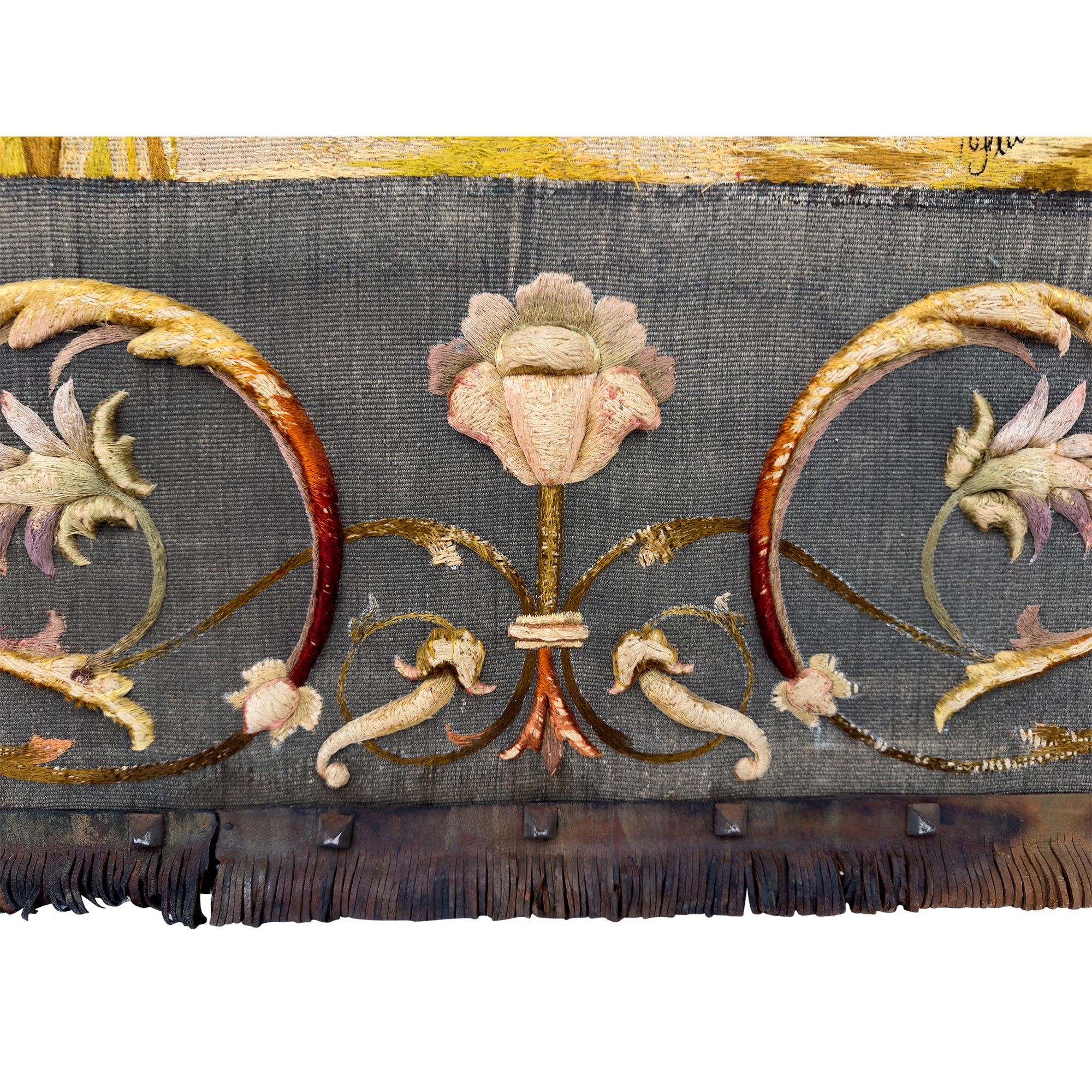 Grande pannello rettangolare in tessuto ricamato e dipinto, 1899