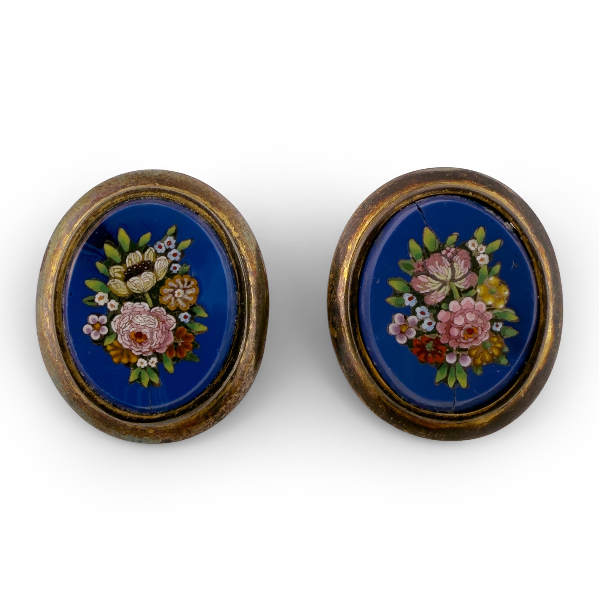 Paio di orecchini con micromosaici ovali a fondo azzurro, fine del XIX secolo