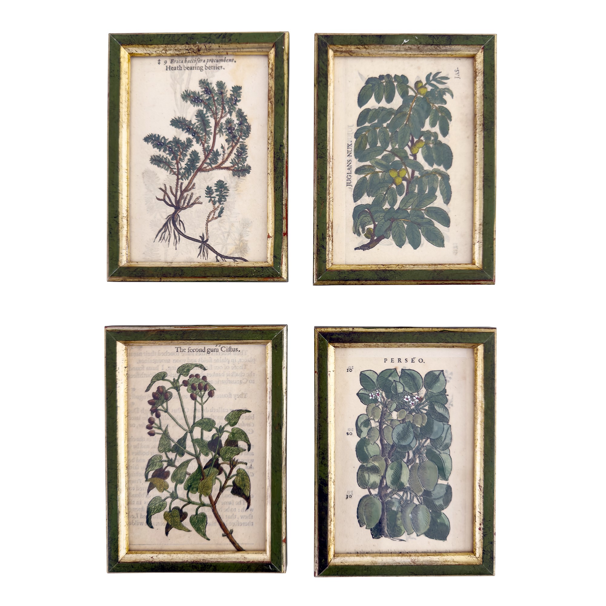 dall'opera di Mattioli raffiguranti specie diverse di piante; cornici di legno laccato verde e dorato a mecca, massimo ingombro: cm. 16,5x12