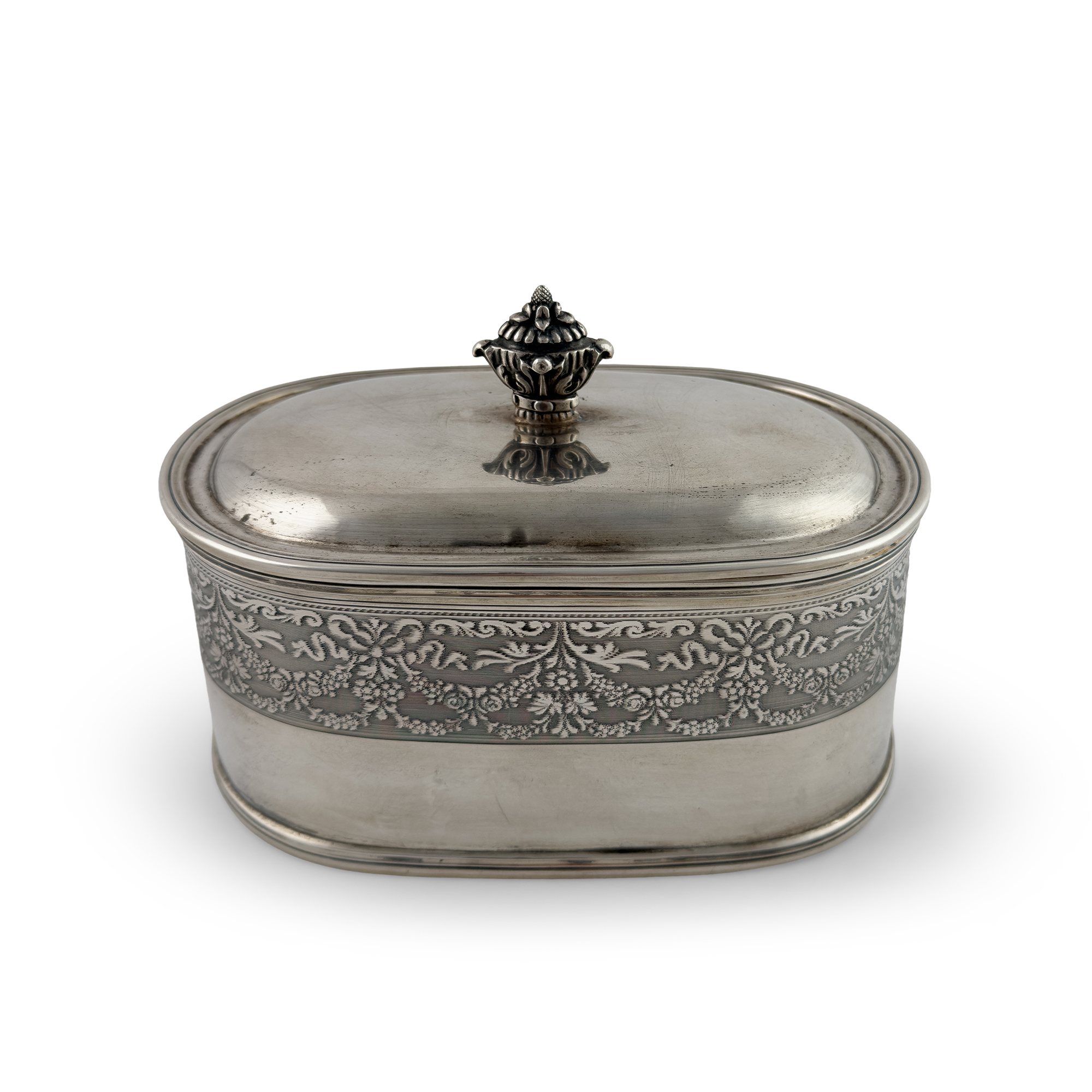 Scatola ovale con coperchio in argento