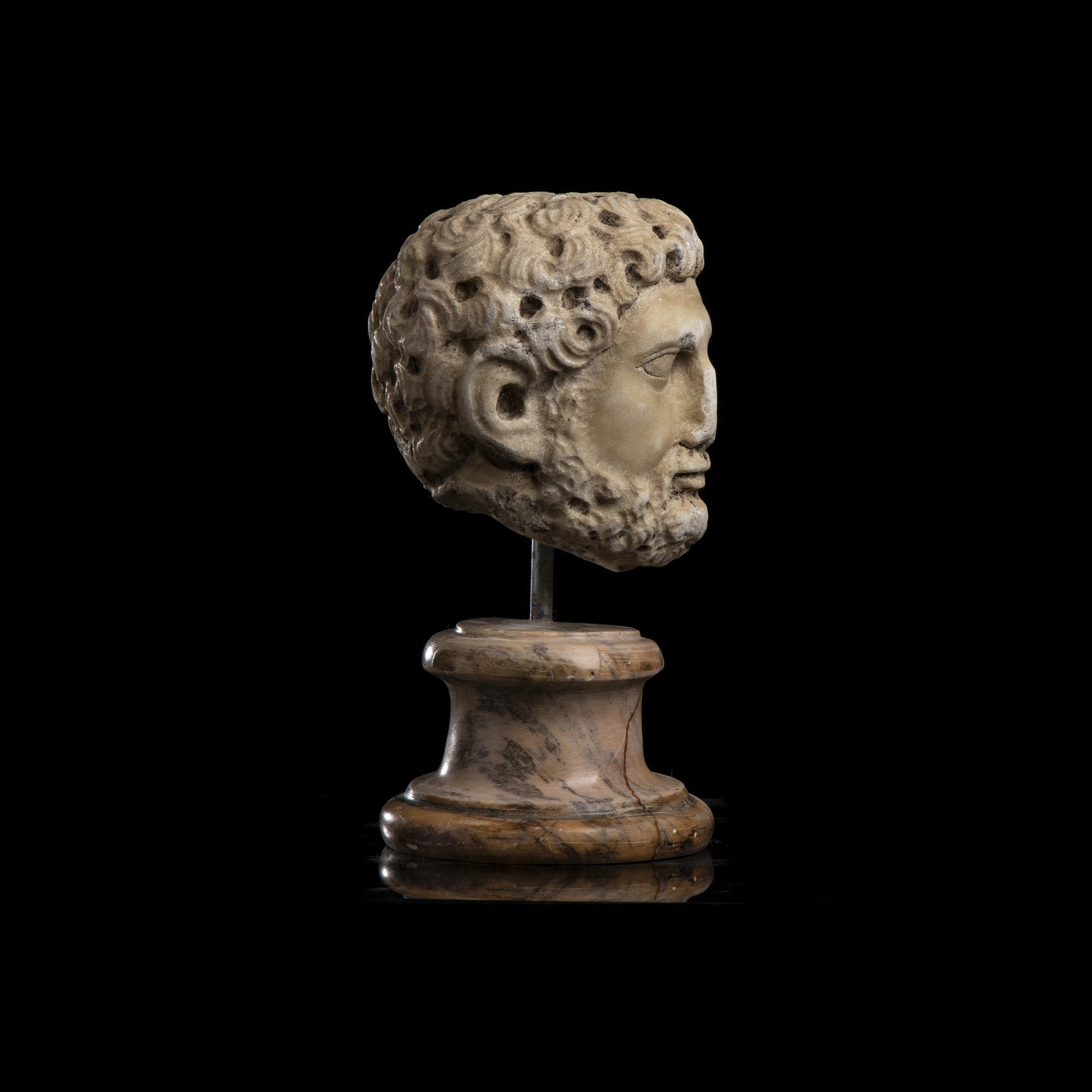 base circolare in marmo giallo antico, complessivamente h. cm. 23